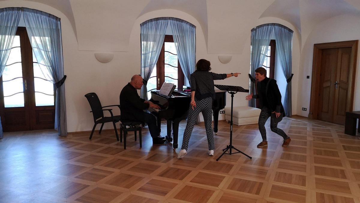Na písně. Ale preciznější téma stanoveno nebylo. Repertoár sahal od Mozarta po Brittena. A obsáhl hodně jazyků. Zpívalo se česky, rusky, polsky, francouzsky, německy, anglicky… Víte, sice jsem mnohokrát pracoval s pěvci, kteří zpívali něco v jazyce, kterým sám nehovořím; ale musím přiznat, že symbióza mezi textem a hudbou je vždycky lepší a užší, když se jedná o známý jazyk, o takový, kterému rozumím. Víte, Elisabeth Schwarzkopf svého času říkávala, že se zpěvák nesmí pouštět do rolí v jazyce, který nezná. Dokonce byla názoru, že německé písně nemá zpívat nikdo jiný než Němec. Hodně radikální názor. Ale něco na tom je, když zpíváte zhudebněné Verlainovy básně, je tam tolik rafinovanových detailů… Hudba je tu proto, aby zintenzivněla výraz citů. Jinak to nemá smysl. A v opeře? Vždyť když vezmete operní libreto a hrajete ho jako divadlo, nemá to valný smysl. Hudba dodává textu život: žárlivost, utrpení… A pak je tu ještě jedna věc. Interpretovi může být výraz jasný a dostatečný, ale k publiku, k posluchači, se nedostane. Je potřeba přidat trochu pepře a soli…