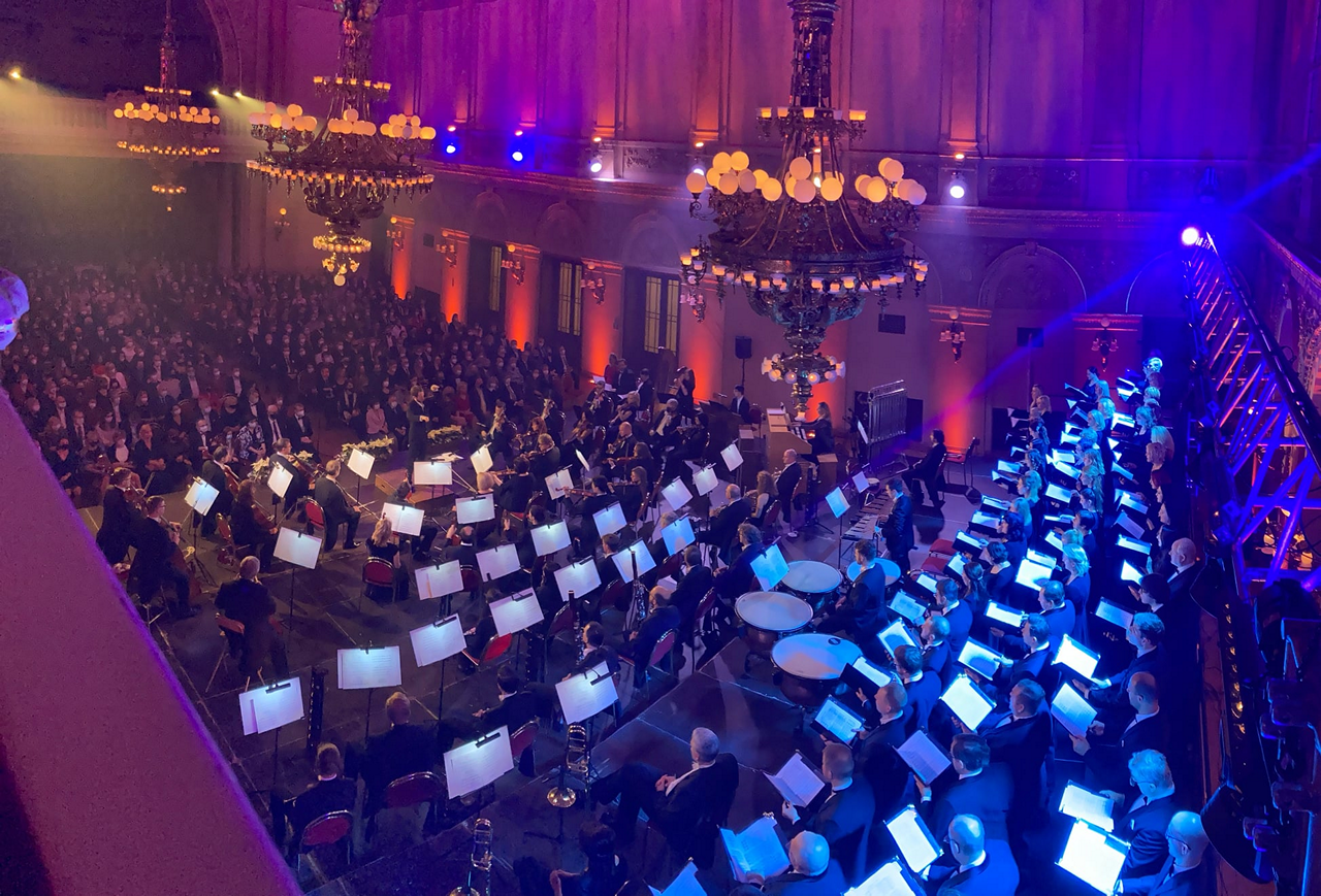 Večer měl světelnou režii, byl pod ní podepsán Jiří Strach. Například houslistu, koncertního mistra Jana Fišera stojícího vpravo nad pódiem na balkoně, tak pro jeho vstupy vždy zvýraznil světelný kužel. A na velkém průčelí nad sborem i na stropě se měnily abstraktní motivy a proměňovaly barevné odstíny.