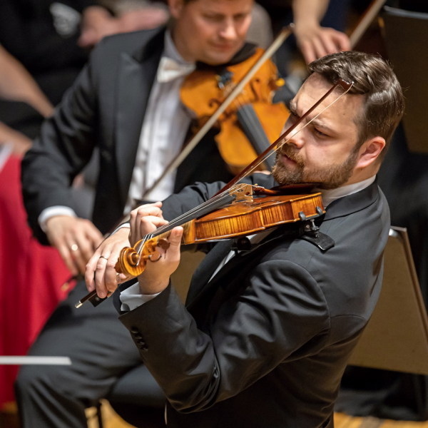 Orchestrální plénum vstupovalo do dění s teatrální tvořivostí, v níž promlouvaly do smyčcové harmonie hlasy dechových nástrojů, které se ujímaly dynamické dominance. Dvojice harf jako by v závěru věty přinesly jistou míru prozření a orchestr nechal odeznít sólové housle v pohybu do výšek. Drsný nástup sólového nástroje ve druhé větě přinesl spolu se zrychlením tempa kontrastní polohu hudby. Břitké motivy s ojedinělým virtuózním arpeggiem proměnil Karvay v dalším běhu v melodické úryvky jako reminiscence na minulé lyrické dění. Brilantně vyhrál sestupné škály a ve finale přidal opět na vroucnosti houslového témbru. Suverénní Tomáš Brauner vedl orchestr s jistotou a přehledem. Jako přídavek zahrál Karvay Chaconnu z Partity č. 2 BWV 1004 Johanna Sebastiana Bacha.