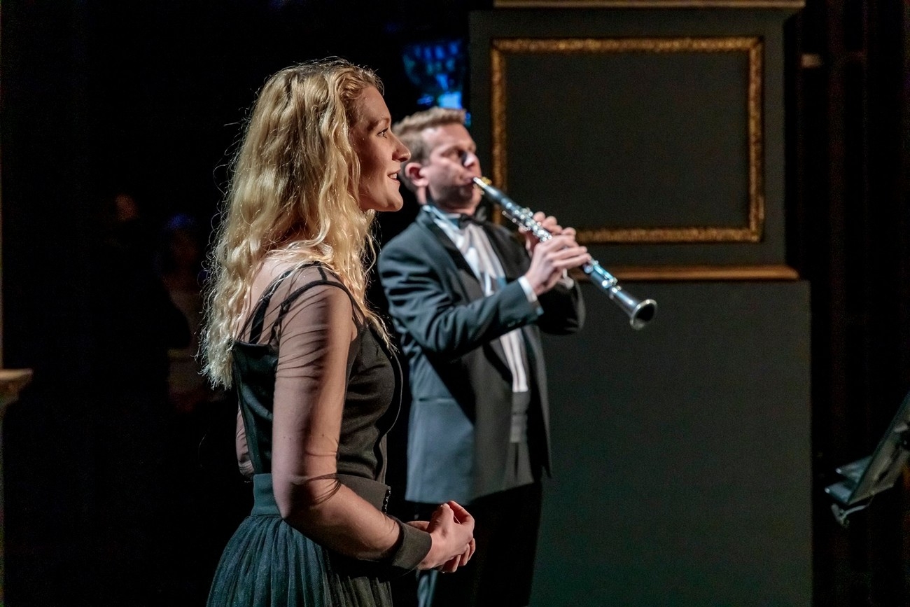 Z Tita sme ďalej počuli duet Ah perdona al primo affetto, v ktorom sa presvedčivo predstavili Kateřina Kněžíková a Michaela Zajmi. Nuansy v hlasovom prejave je, aj v kvalitnom prenose, asi nespravodlivé hodnotiť, skresleniu sa vyhnúť nedá. V celku na mňa ale dobre pôsobila plastickosť a vrúcnosť Kateřiny Kněžíkovej, k lyrickej árii však dobre pasovalo aj striedmejšie podanie Michaely Zajmi. Ďalšou speváčkou, ktorá ovládla pódium, bola islandská mezzopranistka Arnheiður Eiríksdóttir, čerstvá členka sólistického ansámblu ND. V árii Parto, ma tu ben mio vyznel jej tmavší hlas podľa môjho názoru veľmi dobre, znelo a tvárne. Na pódiu jej znamenite sekundoval aj klarinetista David Šimeček; hoci komunikácia medzi oboma aktérmi mohla byť azda trošičku živšia. Posledným číslom z Tita bol kvintet Deh, conservate, oh Dei, kde sme po prvýkrát počuli aj Zbor ND. K trojici doteraz spomenutých speváčok sa tu pridala Alžběta Poláčková, ktorá rôznorodosť hlasov a prejavov skvele skompletizovala, mužský element zastúpil Miloš Horák so svojim pekne zvučným basbarytónom. Súhra aktérov mi nepripadala vždy celkom ideálna, je ale možné, že naživo by kvintet vyznel kompaktnejšie.