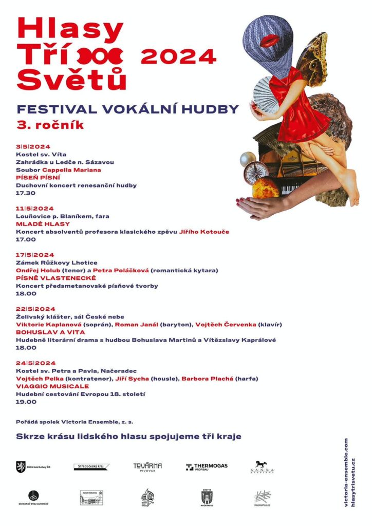 Krásu lidského hlasu si do svého hledáčku vzal soubor Victoria Ensemble, který od září do dubna organizuje řadu koncertů staré hudby a v květnu k ní přidává široce zaměřený mezinárodní festival hudby vokální s titulem Hlasy tří světů. Koncerty probíhají ve Středočeském kraji zejména v okrese Benešov, v západní části kraje Vysočina a v severní části kraje Jihočeského. Letošní květnovou přehlídku otevře vystoupení souboru Cappella Mariana pod uměleckým vedením Vojtěcha Semeráda, který v pátek 3. května zavítá do kostela sv. Víta v Zahrádce u Ledče nad Sázavou. V programu Píseň písní zazní v ryze mužském obsazení ukázky z renesanční duchovní polyfonie. 11. května nabídne festival koncert v Louňovicích pod Blaníkem, kde vystoupí mladé talenty nastupující pěvecké generace za doprovodu klavíristky Lenky Navrátilové. Pořadatelé navíc pro zájemce připravili i odpolední setkání s prof. Jiřím Kotoučem a jeho absolventy. Koncert se uskuteční ve spolupráci se Spolkem pro obnovu louňovických varhan.
