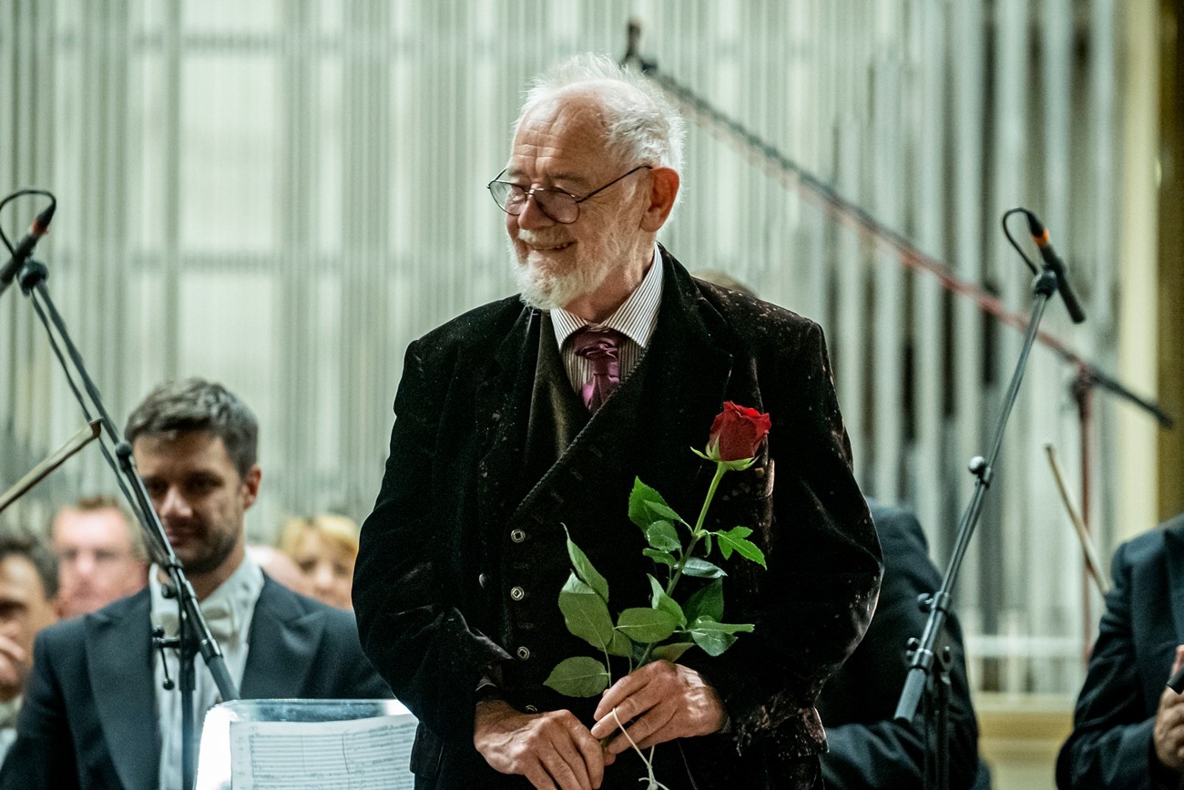 Podobného charakteru byla i Scvrklá symfonie (Schrumpf-Symphonie), která zazněla v české premiéře, půvabné a vtipné šestiminutové dílko z roku 1999, připomínající základní principy čtyřvěté klasické symfonie ve zhuštěné – „scvrklé“ podobě. Instrumentalisté i publikum se evidentně bavili, ovace přítomnému skladateli byly srdečné, často i vestoje.