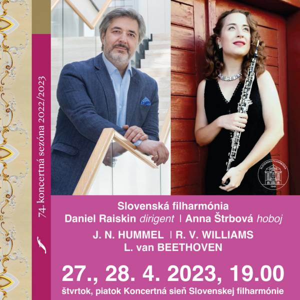 Na nejbližší dvojici symfonických koncertů šéfdirigenta Daniela Raiskina, ve čtvrtek a pátek 27. a 28. dubna, se po boku Slovenské filharmonie debutově představí mladá slovenská hobojistka působící ve Švýcarsku Anna Štrbová. Před pátečním koncertem je v plánu setkání se Danielem Raiskinem, které bude vést a moderovat dramaturg SF Juraj Bubnáš.