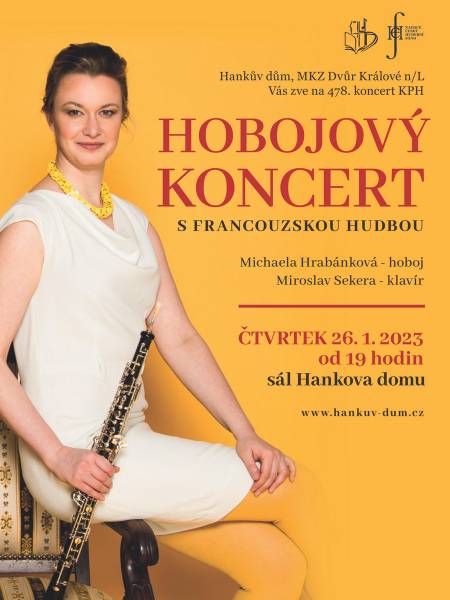 Přední česká hobojistka žijící v Paříži Michaela Hrabánková je členkou prestižního orchestru Královské opery ve Versailles. Kromě toho vlastní unikát anglického rohu, na který při české premiéře zaznělo Largo z Dvořákovy Novosvětské symfonie na konci devatenáctého století. A právě na tento jedinečný nástroj zahraje také na koncertu Kruhu přátel hudby ve Dvoře Králové, konané ve čtvrtek 26. ledna od 19 hodin v Hankově domě. Spolu s ní vystoupí mezinárodně uznávaný klavírista Miroslav Sekera.