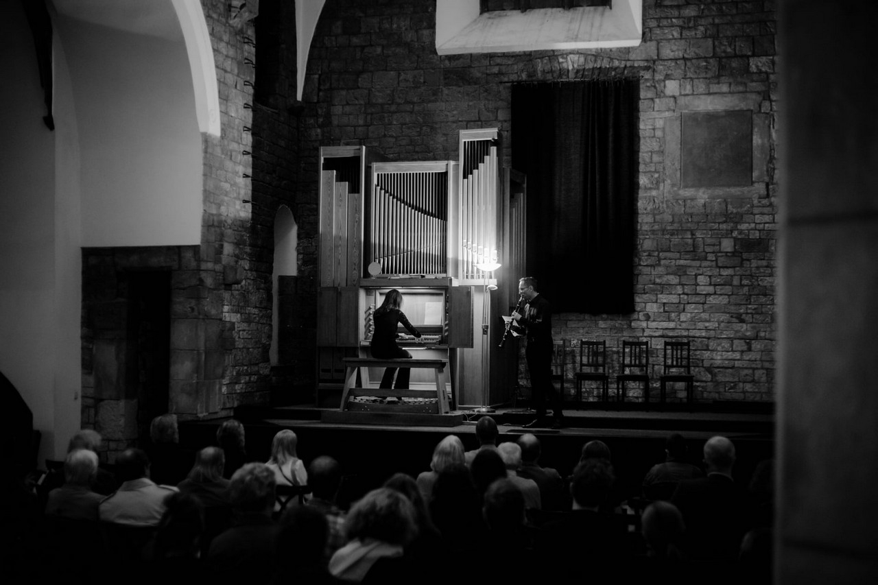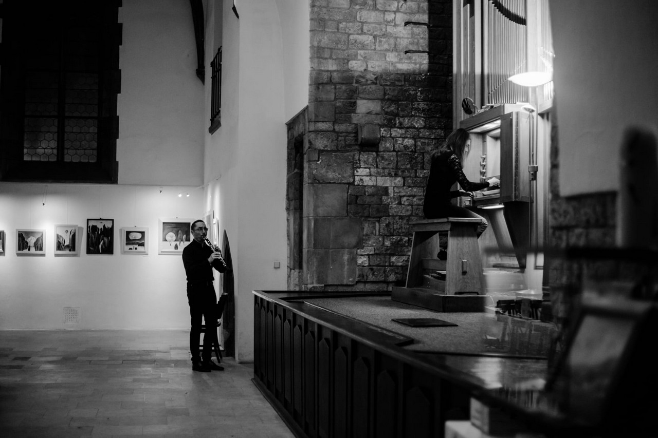 Úvodní kus Connecting skutečně propojil jednak umělce vzájemně mezi sebou a také publikum s umělci, čímž navodil příjemnou a možná trochu tajemnou atmosféru. Projev i hudební obsah byl o poznání klidnější než v první půlce večera. V následujících Antikódech přišla varhanice Marešová s velmi zajímavou invencí v podobě rychlých motivů ve vyšším rejstříku nástroje. Člověk si prostě v tu chvíli řekl, že to je přesně ono (a nemusel k tomu nutně znát Havlovo dílo – umělci sami avizovali, že se nejedná o zhudebnění kaligramů, odkaz spočívá jen v názvu). Naopak klarinet pokračoval v podobném duchu, jaký nastolil v prvním kousku, a tak se charakter hudby obou vystupujících začal trochu rozcházet.