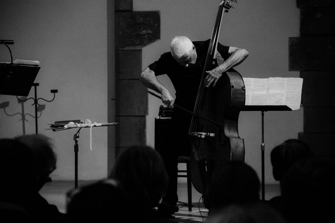 „Během strhujícího vystoupení kontrabasista podrobil svůj nástroj rozmanitým technikám zahrnujícím i hru štětcem, kovovými pruty nebo smyčcem bez žíní.“