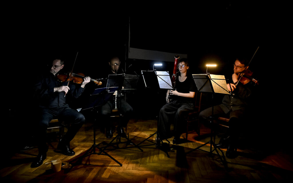 Pěveckým účinkujícím se podařilo diváky pobavit obdobným způsobem jako činohercům, ačkoli bylo zajímavé pozorovat rozdíly v jejich hereckých výrazových prostředcích, které spočívaly například v pevnosti gest a jejich nataktování. Z pěveckých výkonů dominovala jednoznačně sopranistka Lucie Kašpárková s darem příjemně tmavé barvy hlasu doplněným o zvládnutou pěveckou techniku, která ji umožňovala plasticky pracovat s hlasem. Také herecky pestře a účinně, avšak za použití minimálních prostředků dokázala ztvárnit různé ženské pózy, odvážnou Nevěstu, kterou pak vášnivě uchvátí Básník představující romantický protipól jejího novopečeného manžílka, a nakonec tichou, leč oddanou a loajální Ženu znuděného Manžela. Barytonista Aleš Janiga ve svých metamorfózách Loupežníka, Básníka a Manžela zaujal především spíše hereckou akcí, stejně jako jeho kolega tenorista Jakub Tuček v roli nevýrazného a milostně neschopného Ženicha. Dílka šmrncovně díky tečkovanému a synkopovanému rytmu doplňovalo líbivou hrou kvarteto v obsazení Jana Bělohlávka (housle, hudební nastudování), Lubora Pokludy (klarinet), Davida Křivského (viola) a Jany Zmeškalové (fagot).