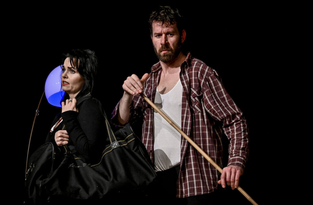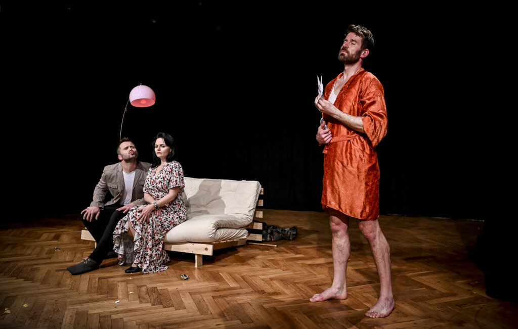 Závěr večera patřil hře Jezevec na borovici aneb japonsko-líšeňská fraška o požitku z hrůzy, jejíž scénář obstarala Pavla Dombrovská z experimentálního Divadla Líšeň na motivy hry Huberta Krejčího. V roli vykutáleného vesničana, jenž vášnivě prahne po strašidelných zážitcích se představil Štěpán Vémola. Partnerem se mu stal jezevec Luděk Vémola. Fascinující bylo pozorovat jejich kontrastující intonaci řeči, zatímco Štěpán Vémola mluvil obdobným způsobem jako herci z prvního představení, protahoval vokály, doplňoval své repliky, které absolutně porušovaly běžný spád české věty, neustálými zvuky s japonským nádechem, Luděk Vémola vedl repliky tak, jak je nám Čechům přirozené. Na hudební trakač je doprovázela sama Pavla Dombrovská alias zakletý pradědeček jezevec. A aby to bylo, jak se patří, experimentální, hráli v kostýmech ze starého papíru, které připravila Marika Toman-Bumbálková.