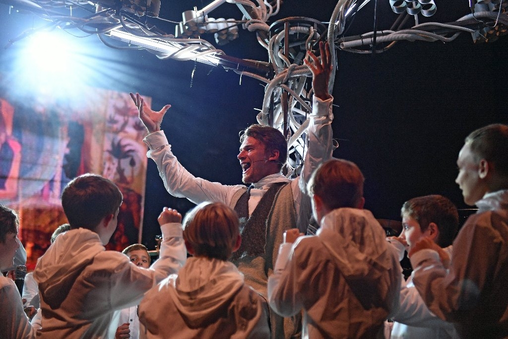 Hodně otázek? Lenny jich naservíroval ještě mnohem víc. Asi víc, než odpovědí. Tu musí každý hledat sám v sobě. Jako takový očistný prvek a symbol naděje a harmonie funguje bíle oděný chlapecký sbor, zde konkrétně členové Pueri Gaudentes, kteří tak nějak andělsky drží postavu celebranta nad vodou a v závěru v sopránovém sóle jednoho z nich zazní ona věta: „Sing God a secret song“. Dílo má každopádně i rysy klasického dramatu a Lenny do expozice, kolize, krize, peripetie a katastrofy geniálně zasadil chorální duchovní hudbu, včera v podání Ensemble Baroque Choir. Dále svobodu a uvolněnost jazzové hudby jako jakýsi protiklad dogmatům, křečovitosti a svázanosti nejen církve, toho se chopili členové zářivého B-Side bandu. K tomu se přidal Orchestr Mass se smyčci, dechy a bohatým arzenálem perkusí a varhanami, což vyústilo několikrát v rockový nářez s prvky blues; s blízkovýchodními rytmy, líznutými taneční náladou až řičícího karnevalového štěstí kdesi v Riu. K tomu všemu vynikající hlasy zpěváků Street Chorus, které evokují atmosféru muzikálu na Broadwayi…