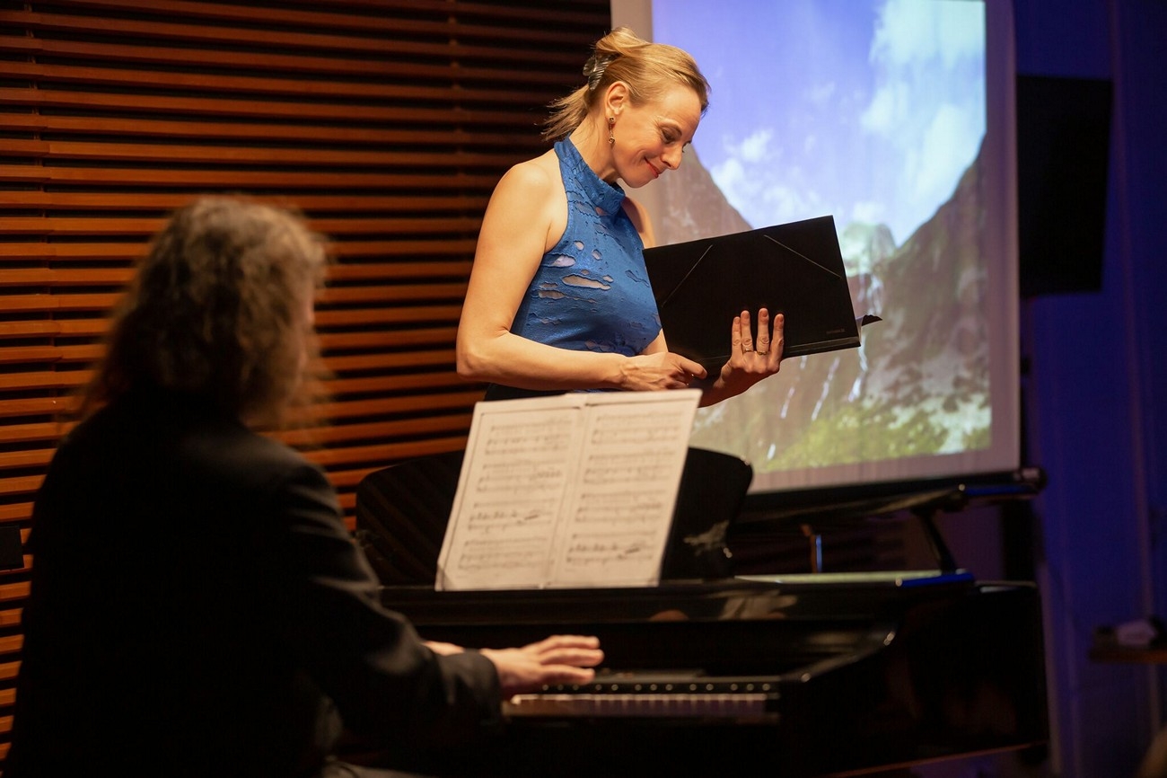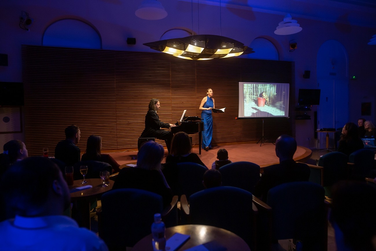 První hudební výstup pozvaných interpretů, zpěvačky Karolíny Berkové a klavíristy Marcela Javorčeka, bylo Prasvětlo z cyklu Chlapcův kouzelný roh od Gustava Mahlera. Jistota a lehkost provedení něžně pohladilo ouška a děti, které již mohly představení i sledovat, nespouštěly z interpretů oči. S časem jejich pozornost sice kolísavě upadala, ale to i hlavy některých, především mužských partnerů. Přeci jenom skladby delší stopáže jsou na koncentraci poněkud náročnější, což se projevilo například při první hudební vložce Markéty Vejvodové od Clauda Debussyho.