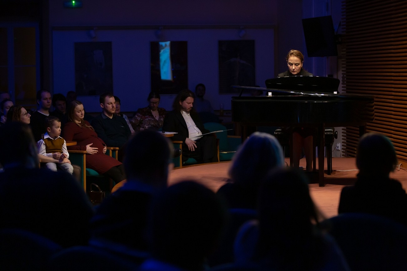 Rozkošné byly písně z Dětské světničky od Modesta Petroviče Musorgského. Karolína Berková každou píseň uvedla scénkou z dětského světa v českém jazyce, aby posluchači lépe chápali děj písně. Další povídání bylo proloženo skladbou od Maurice Ravela a hudební program zakončily písně od Edvarda Griega vybrané cyklů Děvče z hor, op. 67 a Melodie srdce na texty Hanse Christiana Andersena, op. 5. Taktéž klavírista Marcel Javorček přidal důležitý dílek k příjemné atmosféře – mimo hry na klavír se zhostil přepínání fotek na projektoru, který doprovázel jak průvodní slova, tak skladby samotné. Při klavírních výstupech Markéty Vejvodové pečlivě s partiturou přepínal snímky sám. Přestože fotky měly spíše ilustrační funkci, oceňuji sladění s hudbou.