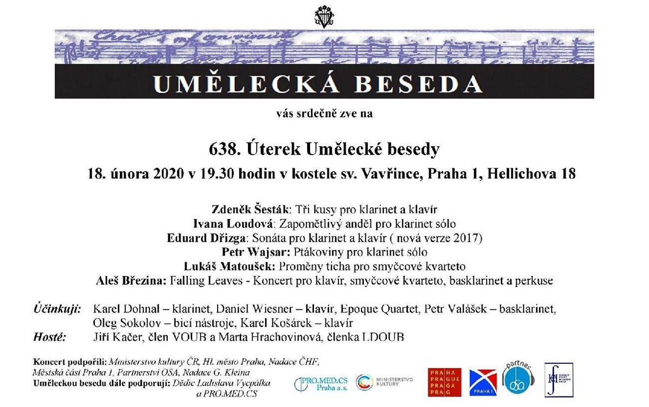 Spolku Umělecká beseda bych ráda popřála mnoho dalších úspěšných aktivit a koncertů. Jde o velmi důležitou a ušlechtilou činnost pro hudební kulturu v Čechách. Je dobré, že tento večer finančně podpořily ministerstvo kultury, Městská část Praha 1, Partnerství OSA, Nadace Gideona Kleina a Nadace ČHF; poděkování za podporu patří i Dědicům L. Vycpálka a PRO.MED.CS. Již teď se můžeme těšit na další koncert tohoto druhu, a to opět v úterý – 24. března. Vystoupí na něm talentovaní interpreti Barbora K. Sejáková a Eduard Šístek s programem sestaveným z děl českých skladatelů 20. století.