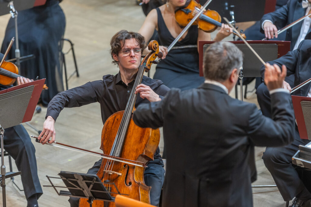 Večtvrtek 27. listopadu byl uveden Weinbergův Koncert pro violoncello a orchestr d moll, op. 43, který skladatel komponoval od roku 1948 a během premiéry v lednu 1957 ho hrál spolu s Moskevskou filharmonií věhlasný violoncellista Mstislav Rostropovič. Posluchači v olomoucké Redutě měli možnost vyslechnout dílo v podání Moravské filharmonie společně s mladým českým violoncellistou Vilémem Vlčkem. Vlček začal hrát na violoncello v šesti letech a dnes studuje na Musik-Akademie v Basileji ve třídě profesora Danjula Ishizaky. Hraje na nástroj z dílny neapolského houslaře Lorenza Ventapaneho a jako sólista už vystoupil ve více než třiceti zemích světa. Spolupracuje s předními českými i zahraničními orchestry a také hrál v Kukal Quartetu. V roce 2023 získal Cenu Jiřího Bělohlávka, zvítězil v soutěži Krzystofa Pendereckého v Krakově a na Mezinárodní instrumentální soutěži v Markneukircheunu. O rok později debutoval na festivalu Pražské jaro sólovým recitálem v Anežském klášteře. (Reflexe ZDE.)