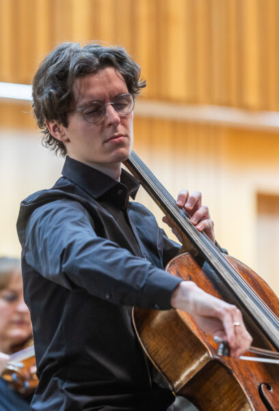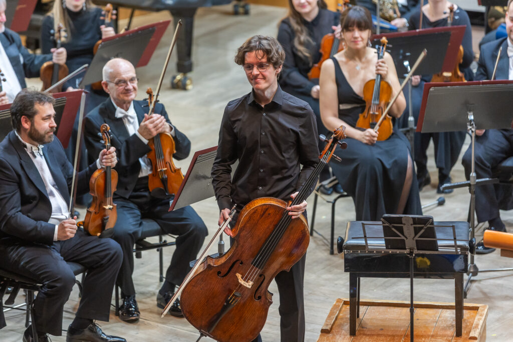 Večtvrtek 27. listopadu byl uveden Weinbergův Koncert pro violoncello a orchestr d moll, op. 43, který skladatel komponoval od roku 1948 a během premiéry v lednu 1957 ho hrál spolu s Moskevskou filharmonií věhlasný violoncellista Mstislav Rostropovič. Posluchači v olomoucké Redutě měli možnost vyslechnout dílo v podání Moravské filharmonie společně s mladým českým violoncellistou Vilémem Vlčkem. Vlček začal hrát na violoncello v šesti letech a dnes studuje na Musik-Akademie v Basileji ve třídě profesora Danjula Ishizaky. Hraje na nástroj z dílny neapolského houslaře Lorenza Ventapaneho a jako sólista už vystoupil ve více než třiceti zemích světa. Spolupracuje s předními českými i zahraničními orchestry a také hrál v Kukal Quartetu. V roce 2023 získal Cenu Jiřího Bělohlávka, zvítězil v soutěži Krzystofa Pendereckého v Krakově a na Mezinárodní instrumentální soutěži v Markneukircheunu. O rok později debutoval na festivalu Pražské jaro sólovým recitálem v Anežském klášteře. (Reflexe ZDE.)
