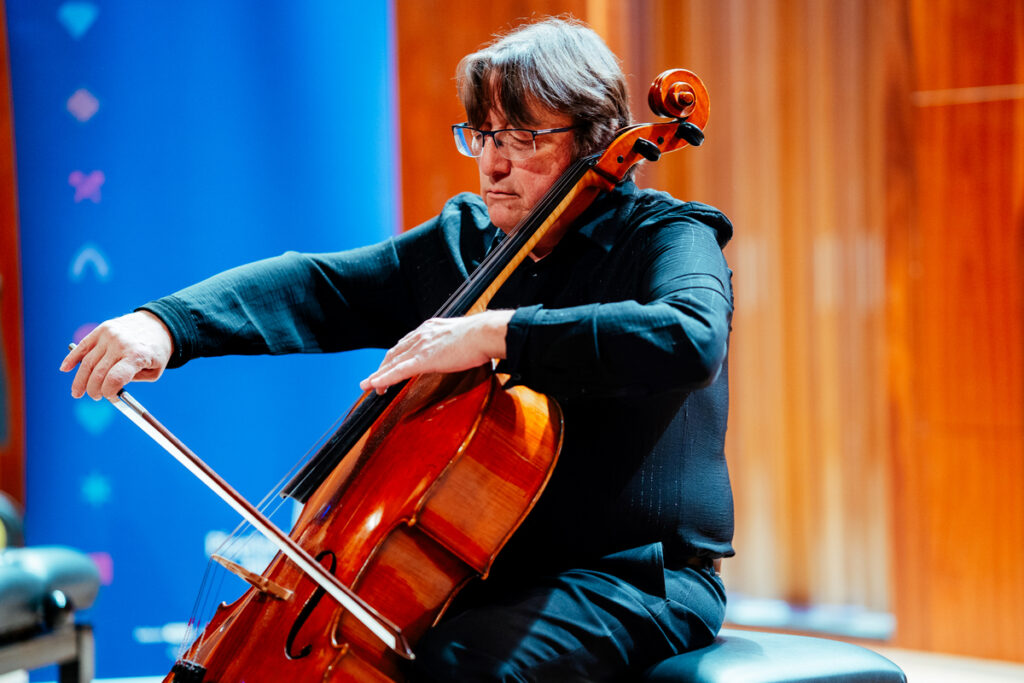Poté dostal prostor pro sólo i Eugen Prochác. Vybral si též (takřka) soudobou skladbu: Monolog pro sólové violoncello Ilji Zeljenky z roku 1983. Je to skladba připomínající akční malbu: je živelná, organická, bez jasného řádu; rozmáchlé hudební motivy zde suplují gestické tahy na plátně. Pracuje též s hluky ve formě ťukání, plácání či tření na korpusu nástroje. Interpretace Eugena Procháce byla nezaměnitelná a naprosto sebevědomá. Jednotlivá hudební gesta či textury byly provedeny a vzájemně propojeny tak, že se podařilo takřka nemožné: z nesourodého vytvořit jednolité. Do bezpečí salónů 19. století nás pak přeneslo Scherzo, op. 12 od Daniëla van Goense. S částmi vyplněnými rafinovanou citovostí kontrastovalo bleskurychlé téma hned ze začátku skladby, což učinilo z provedení značný technický úkol, se kterým si duo v pořádku poradilo.