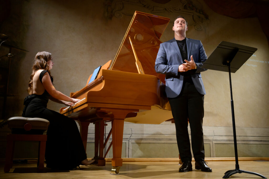 Pódium první části koncertu patřilo třem dvojicím frekventantů, vokalistů s klavírními partnery. Byly to mezzosopranistka Kristýna Kukalová a klavírista Filip Martinka, dále tenorista Marek Žihla a klavíristka Kristina Marková a konečně sopranistka Natálie Šmausová s klavíristou Pavolem Praženicou.