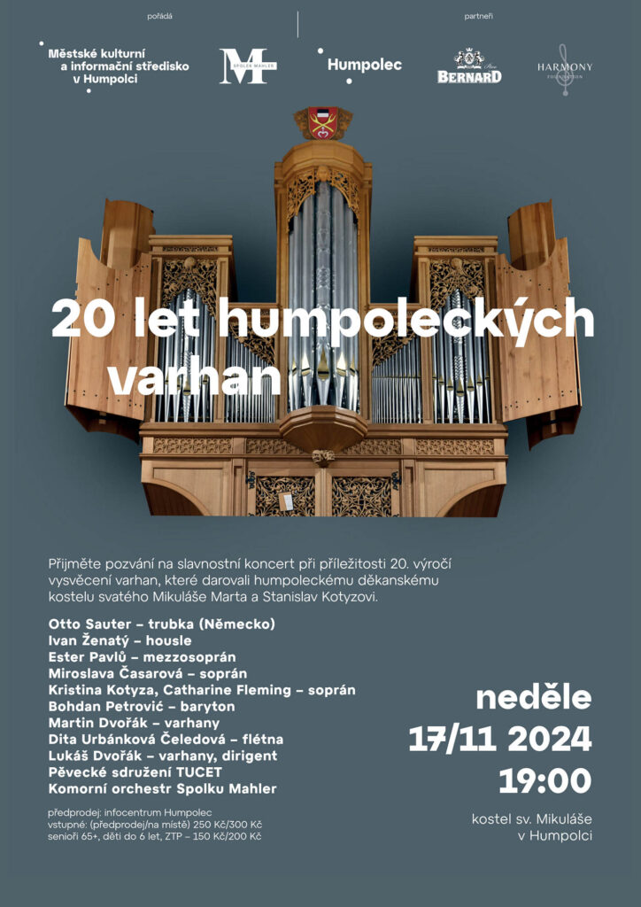 Letošní rok je tomu již dvacet let, kdy byly vysvěceny varhany v humpoleckém kostele svatého Mikuláše. Tento královský nástroj od té doby přispívá nejen ke kráse liturgie, ale také vychoval řadu varhaníků, hostil varhanní kurzy, soutěže, festivaly a při četných koncertech přivítal mnoho interpretů z domova i ze zahraničí. Výročí realizace výstavby oslaví koncert 17. listopadu za účasti předních interpretů i žáků místní ZUŠ.