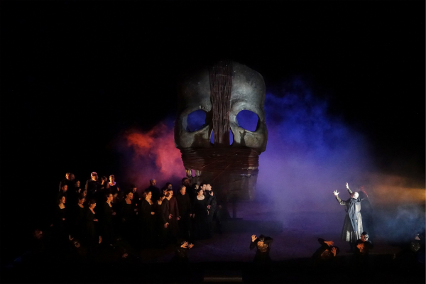 „Inscenace je dílem skotského režiséra Davida McVicara, hudebně operu nastudoval a řídil pravidelný spolupracovník divadla Sir Simon Rattle. Inscenace se dá označit jako klasická, hraje se na prázdné scéně, které vévodí zavěšená lebka. Režisér děj opery nikam nepřekládá ani nepřekrucuje vztahy mezi jednotlivými postavami.“