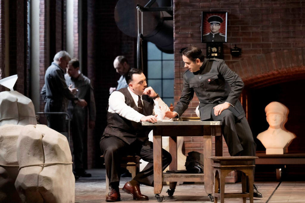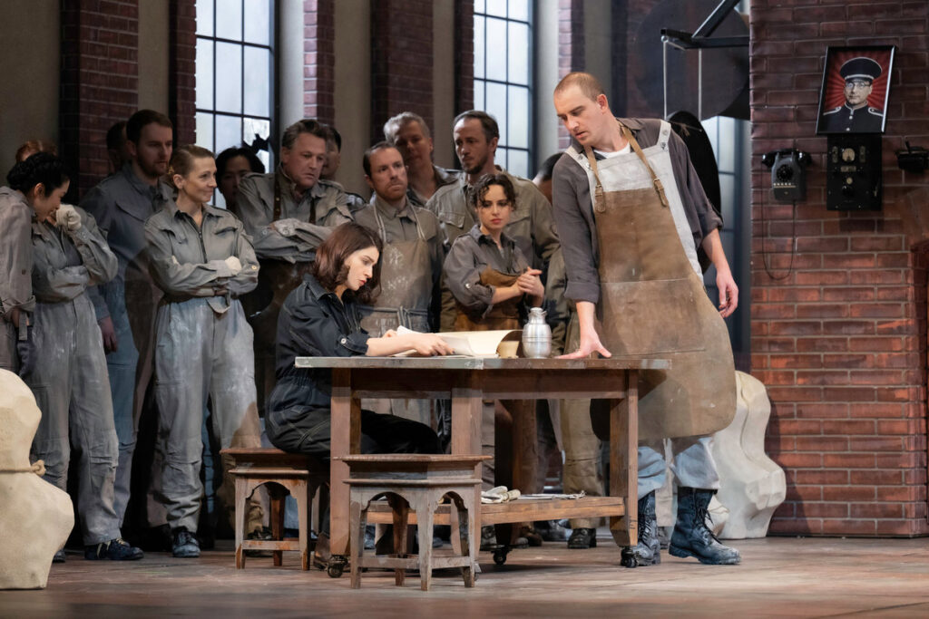 Logičnost akcí na scéně posilovala realistická scéna Zinovyho Margolina, pocházejícího z Bílé Rusi. Je pravidelným spolupracovníkem režiséra, tvoří spolu sehraný tým a to jistě přispělo ke koherenci a pestrosti dění na scéně. Ta je realistická, i když náznaková. Nejprve keramická dílna, kde se sériově vyrábí busty diktátora, podobného ruským důstojníkům. Uctívanými svatými relikviemi jsou úlomky rozbitých antických soch, s čistými liniemi, které dělníci pečlivě ukrývají před vojáky. Není z kontextu jasné, kdo je Norma a její lid, z jakého etnika, může to být kdokoli a v jakémkoli čase. Ale vztah despotických okupantů k porobeným dělníkům je explicitně vykreslen. Detailem, naznačujícím atmosféru, je hitlerovský knírek pod nosem Polliona.