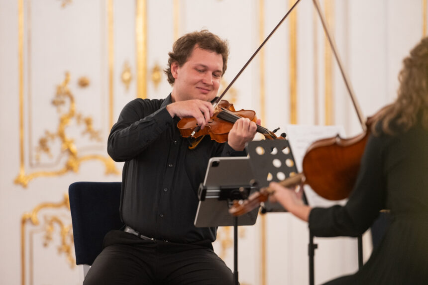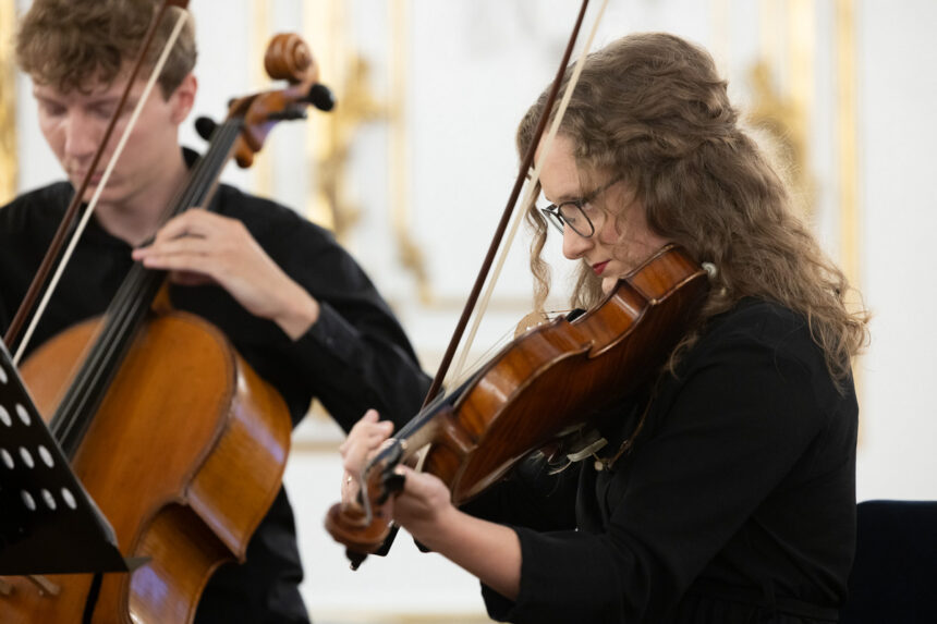Jako první vystoupilo Kubitovo kvarteto, aby zahrálo první větu Adagio ma non troppo – Allegro appassionato ze Smyčcového kvartetu As dur, op.105 Antonína Dvořáka. Kvarteto potvrdilo své kvality i vůli se nadále prosazovat v hudebním světě a přesvědčilo, že si plně zaslouží titul laureáta. (O oceněných letošní Academy Kroměříž čtěte ZDE.) Mladí absolventi Orchestrální akademie České filharmonie založili smyčcové kvarteto v roce 2024 a v Kroměříži zdokonalovali své umění pod vedením lektora Pavla Nikla. Ve složení Filip Kubita, Kateřina Vítečková (housle), Michaela Sedláčková (viola) a Petr Hamerský (violoncello) nadchli publikum melodičností a smyslem pro napětí a výraz. Poprvé v historii Akademie bylo oceněno smyčcové kvarteto.