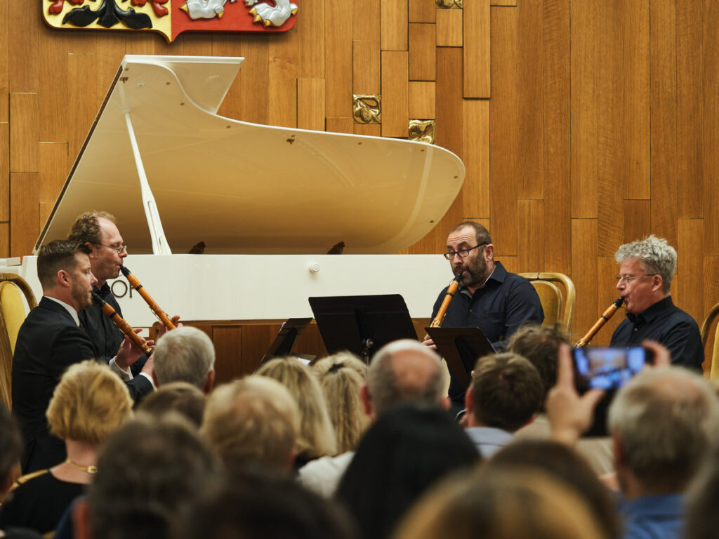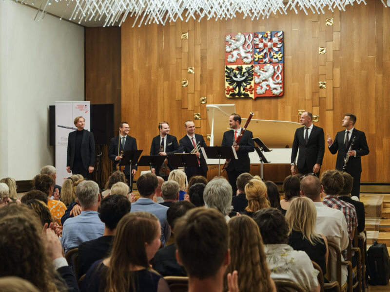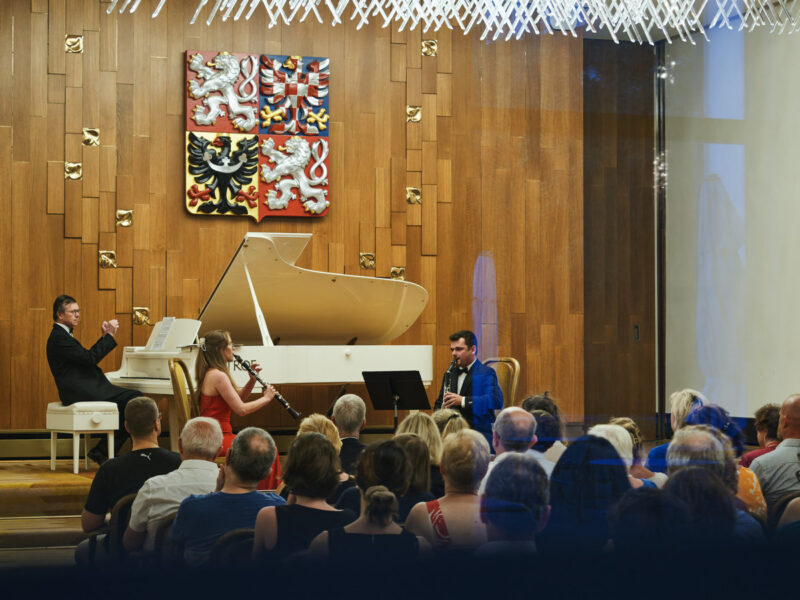 Prostory Sálu státních aktů i přilehlá prostorná terasa s vyhlídkou na jižní křídlo Pražského hradu zaujaly návštěvníky výzdobou i mimořádným výhledem. Sál se naplnil do posledního místa, aby po úvodním proslovu Ing. Věry Kovářové, místopředsedkyně Poslanecké sněmovny, a Irvina Venyše, ředitele festivalu Pražské klarinetové dny, předali místo hudbě, v níž kralovaly klarinety.