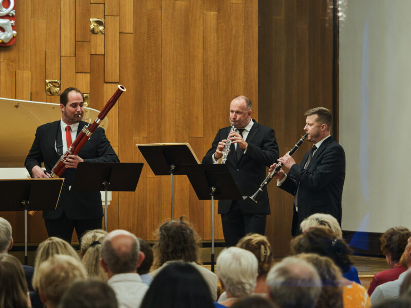 V Koncertním kusu č. 2 d moll, op. 114 Felixe Mendelssohna-Bartholdyho zazářila polská klarinetistka Alicja Olekszak, absolventka Hudební akademie Karola Szymanovského v Katovicích i Ostravské univerzity, od letošní sezóny nová členka Prague Philharmonia. Na moderní basetový roh hrál Filip Smyček, nyní student HAMU právě ve třídě Irvina Venyše, který spolupracuje s Českou studentskou filharmonií i hraje v komorním Quintetto Soffio. Klarinetistka od prvního tónu okouzlila posluchače virtuozitou s lehkostí vytříbeného tónu, neskutečnou technikou a vynikajícím podáním romantické skladby autora, který tehdy prožíval své šťastné, úspěšné období. Basetový roh v rukou Filipa Smyčka byl rovnocenným partnerem s propracovanými hlubšími tóny sametové barvy a klavír Daniela Wiesnera provázel komorní hráče jako vždy virtuózně odvažovaným doprovodem; trio svým podáním plným bohaté vnitřní krásy právem sklidilo obdiv publika.