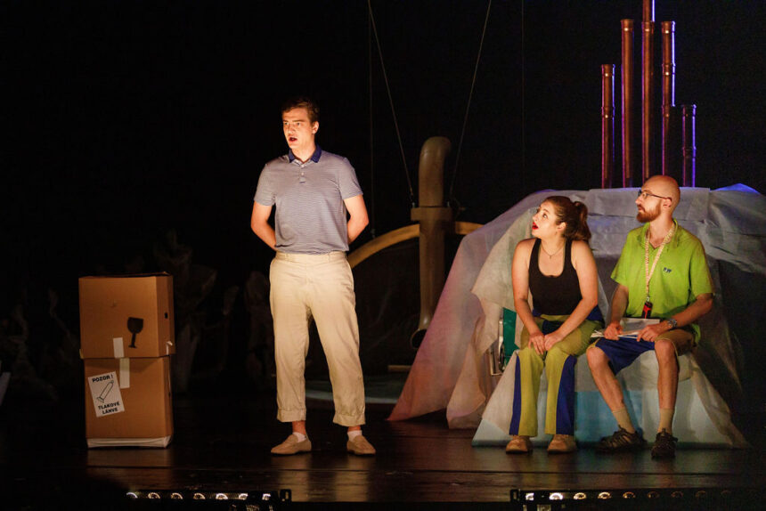 Porucha na lodi Nautilus Lukáše Hurníka není typickou operkou jen pro malé děti. Hrají v ní vesměs dospělí a obrací se jak k menším, tak i k větším divákům. Hudební festival Znojmo zadal přípravu inscenace čerstvé novinky studentům brněnské JAMU. Sobotní odpolední premiéra ve znojemském divadle přítomné potěšila – hravými verši libreta, rozverně neoklasickou hudbou i šikovným interpretačním uchopením.