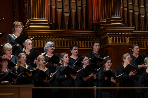 Ani Pražský filharmonický sbor nezůstal stranou pozornosti, hned první vstup „Doch seine Ströme sind jetzt rot von Meschenblut“ zaujal svou mohutností a až fatalistickým výrazem. Naopak sborová část „Weh, weh, weh, er fehlte das Ziel“ svou mírnou akcentací a neustálými průtahy vyvolávala emoce zmaru a smutku od prvního tónu. Závěrečné číslo, kdy andělé vítají Peri konečně v ráji, dalo snad přispěním sboru odpověď na otázku z titulku tohoto článku. Schumann zde zkomponoval hudbu tak, jak si snad přál, aby zněla při překročení brány nebeské a PFS tuto atmosféru bezezbytku naplnil. Ano, takhle může znít ráj! Možná, že Hardingova gesta nebyla pro sbor vždy absolutně čitelná, neboť jsem měl dojem, že jejich reakce nejsou tak přesné, jako třeba pod Lukášem Vasilkem. Výsledný dojem z celku to však poznamenalo opravdu jen nepatrně, spíše v detailech, které však patrně vnímá jen pravidelný posluchač tohoto prvotřídního sboru.
