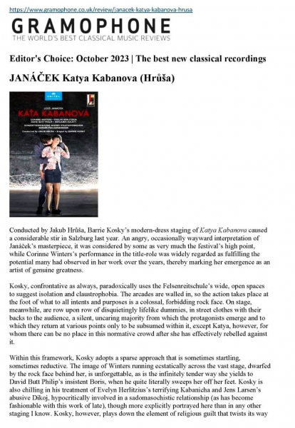 Dirigent Jakub Hrůša se po několika týdnech vrací na přelomu listopadu a prosince ze Spojených států do Evropy. K představením Janáčkovy Jenůfy v Lyrické opeře se v Chicagu nicméně přidal ještě narychlo domluvený záskok za Daniela Barenboima při tamním hostování orchestru Staatskapelle Berlin. V rozhovoru pro portál KlasikaPlus.cz Jakub Hrůša vypočítává, o kolik dnů se zdrží déle, a jedním dechem dodává, jak moc a proč se ale na koncerty těší. Čas v Americe samozřejmě vedle Janáčkovy opery věnuje i studiu jiných děl, především Smetanovy Libuše, která ho čeká v Roce české hudby 2024. V rozhovoru se vrací k uvedením Dvořákových vokálních děl v Berlíně a v Římě, ke Stabat mater Petra Fialy uvedené v Bamberku, k tomu, co ho čeká jako budoucího hudebního ředitele londýnské Královské opery, a v osobní vzpomínce k odkazu nedávno zesnulého Mirko Škampy, který byl dlouholetý spiritus agens Pražského studentského orchestru. A k Janáčkovi Jakub Hrůša poznamenává, že se mu repliky z jeho jevištních děl vynořují v běžném životě…