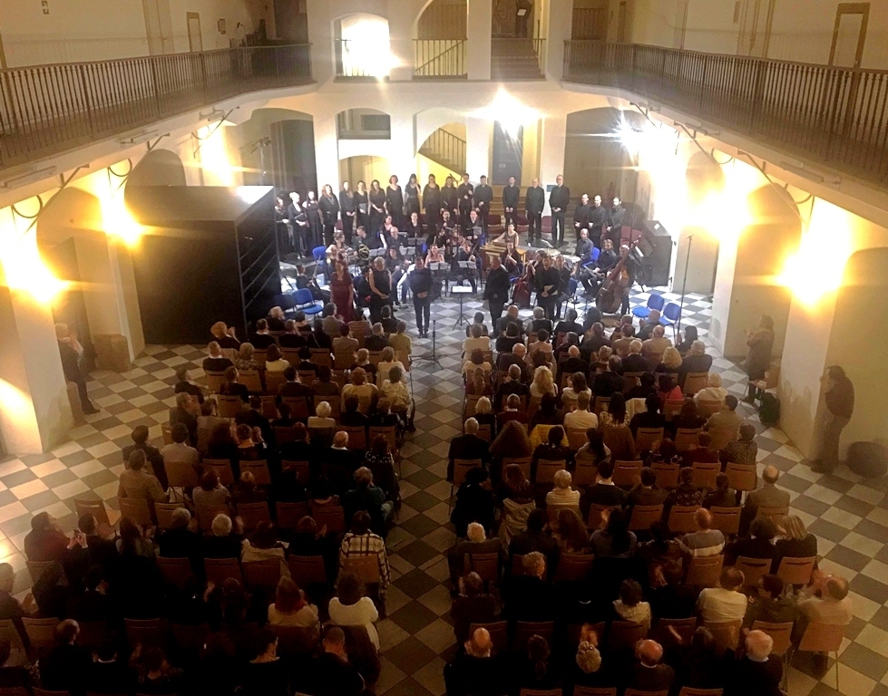Nevelký orchestr s dobovými nástroji a nevelký smíšený sbor obsáhly prostor dostatečně – tamní mimořádně dlouhý dotvořil provedení až do střídmé monumentality. Už v promluvě před koncertem Marek Štryncl upozornil na dobové zprávy z doby kolem roku 1800 o výrazových manýrách, které provázely hudební produkce. Domyslel je hodně daleko, hodně odvážně.