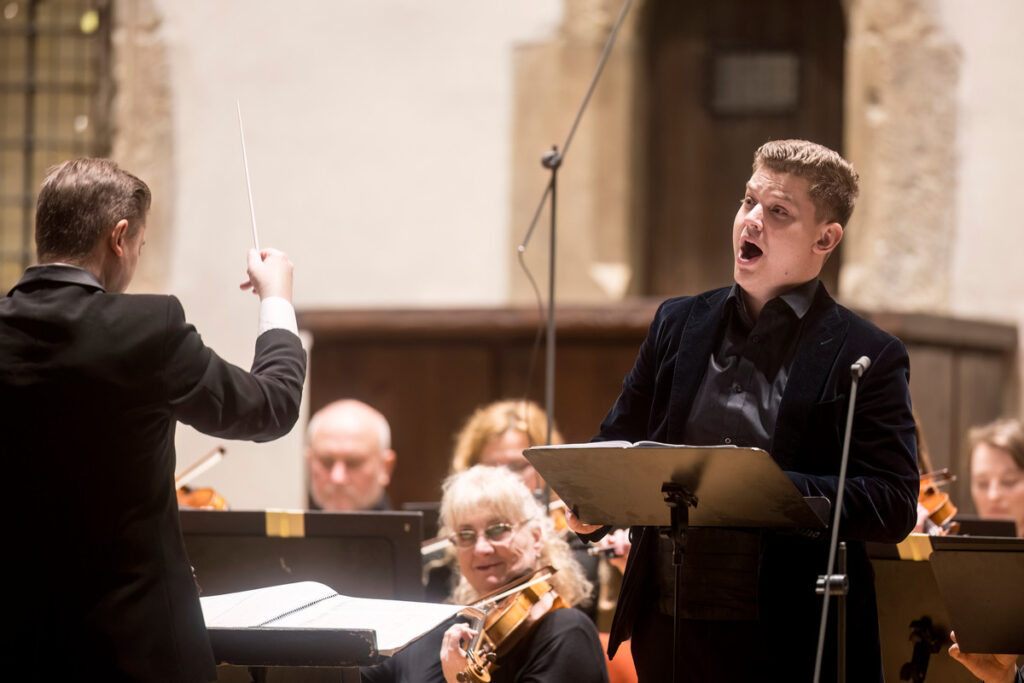Kučerových Šest vánočních písní pro sóla, sbor, varhany a orchestr s titulem Benedicamus Domino diváci vyslechli s přispěním elitního českého tenoristy Daniela Matouška, dále barytonisty, také sólisty pražské Opery Národního divadla Jiřího Hájka a ještě nejmenované (bohužel), velmi pěkně snaživé sólistky z Dětského pěveckého sboru Českého rozhlasu. Pěvce Matouška považuju za TOP 5 českých tenoristů, kvalitu prokázal mnohokrát, vytížený je právem jako málokdo a technicky je spolehlivý. V daném případě však nepřesvědčil, byť všecko odzpíval bezpečně. Nejnápadnější úlohu obdržel v písni Kristus Pán se narodil, kterou se Jan Kučera rozhodl posadit, nutno říct, do nepříjemně vysoké polohy, navíc s velmi subtilním doprovodem, tudíž pro vokál o to nekomfortněji. Předchozí spoluprací s písňovým spolkem Lieder Society bych očekával podstatnější projevení se tohoto faktu v přístupu zpěváka k prostým vánočním písním, jež vyžadují zejména civilní, co nejpřirozenější, nějak obyčejný, jednoduchý, klidně až banální interpretaci. 12. prosince však byl slyšitelný zejména operní background pěvce, který zároveň neeliminoval nevhodné „vozíčky“, tu intonační berličku nejednoho umělce. Jiří Hájek zmíněné problémy nevykazoval, jeho vklad daleko lépe odpovídal koloritu věci, interpretoval citlivěji, ovšem v mnohem snazším partu.