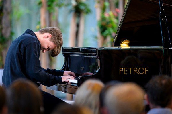 Klavírista usedl k nástroji bez nervozity, Mozartovu Sonátu Es dur, K. 282 spustil s okamžitou inspirací. Celá se mi moc líbila, obzvlášť první dvě věty. Volná první věta měla v sobě cosi naivního i oduševnělého, nějakou míru komplexity, kterou umělec nemusel vynucovat. Neohýbal nepřirozeně čas, s vnitřní účastí naslouchal harmoniím a intervalům. Oči měl obrácené vzhůru, se zbystřenými smysly nešetřil energií na obsahu. Druhá věta byla rytmicky pružná, taneční, nechyběl jí vtip. Celá skladba, stejně jako i další skladby v programu, byla profesionálně připravená. Bez pochyb v ohledu paměti, technicky sebejistá, dařila se zamýšlená hudební rozhodnutí.