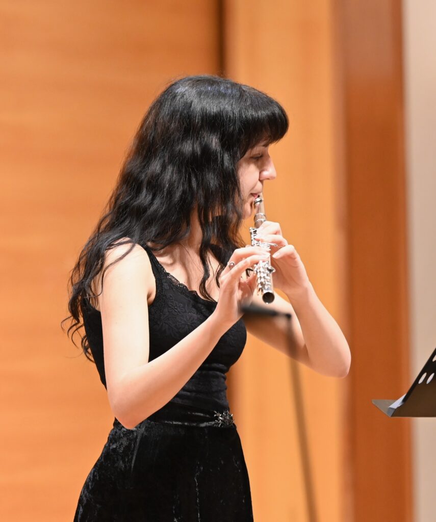 Z koncertu samotného zazářily zejména dva výkony, které dalece přesáhly rámec studentské interpretace. Srbská flétnistka Sofija Mihailović, laureátka brněnské soutěže, si zvolila dvě náročné soudobé kompozice. Především East Wind izraelsko-americké skladatelky Shulamit Ran patří k interpretačně nejobtížnějším skladbám pro sólovou flétnu konce 20. století. Její provedení bylo technicky brilantní: suverénně zvládnuté chromatické běhy, glissanda, skoky, přesvědčivé dechové členění i výstavba frází. Mihailović dokázala skladbu vystavět jako sugestivní vnitřní monolog – s dramatickými kontrasty, kontemplativním tichem a osobitou emocionalitou. Výkon, který neoslňoval pouze technikou, ale především hloubkou výrazu.