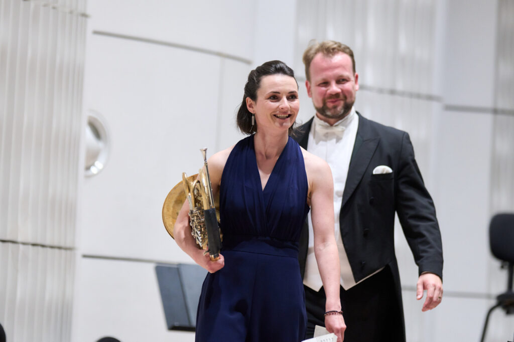 Následoval Koncert č.1 Es dur pro lesní roh a orchestr, op.11 Richarda Strausse. Jde o jedno z nejzákladnějších děl literatury pro tento nástroj, mistrovský koncert pro hornisty. Richard Strauss jej přitom napsal teprve jako osmnáctiletý, pod vlivem nástroje otce, výborného hornisty. Jde tedy spíše o romantizující hudbu, která stojí na efektních vstupech lesního rohu, podložených doprovodem a odpověďmi orchestru. Zde se představila v roli sólové hráčky hornistka České filharmonie Kateřina Javůrková. První větu Allegro zahájila fanfárovým motivem pevným tónem a s intonační jistotou, dávající najevo, že před publikem stojí sebevědomý mistr svého nástroje. Měkká kantiléna, bezchybné intervalové skoky, zpěvnost i niterná muzikalita, to vše podpořené odpověďmi jednotlivých skupin orchestru vytvořilo radostnou atmosféru.