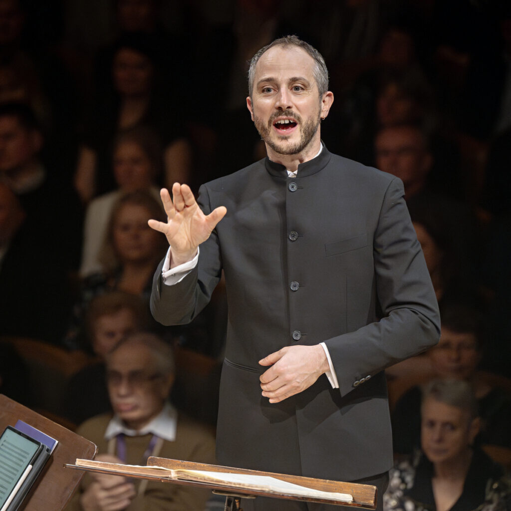 Pro projekt, uvedený v pražském Rudolfinu a o den dříve v drážďanském kostele Annenkirche, byl Gregor Meyer hostem Collegia 1704 v době, kdy zakladatel a umělecký šéf orchestru a sboru Václav Luks hostuje v Německu. Je druhé desetiletí sbormistrem u hlavního vokálního tělesa při Gewandhausorchestru v Lipsku. Jeho zázemí je však širší. Založil a osmnáct let vedl Vocalconsort Leipzig, založil formaci Opella Musica, se kterou natočil kompletní nahrávku kantát Johanna Kuhnaua, od roku 2014 s Ensemble 1684 udržuje repertoár Johanna Rosenmüllera. Je synem evangelického faráře, vystudoval chrámovou hudbu. Pětačtyřicetiletý umělec, hrající také na varhany a na klavír a aranžující vokální hudbu, má veškeré předpoklady k tomu, aby Bachovo Vánoční oratorium dopodrobna znal a zasvěceně i autenticky prožitě nastudoval. Což se potvrdilo a stalo.