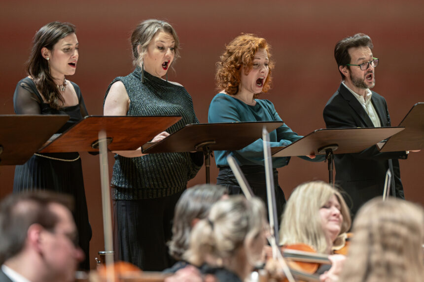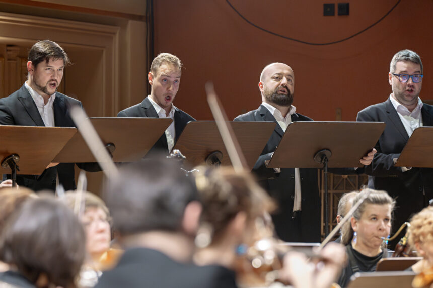 Zásluhu na nádherném výsledku pražského koncertu měly pod Meyerovým vedením oba domácí, i když mezinárodně obsazené soubory, totiž Collegium 1704 a Collegium Vocale 1704, ale s nimi a současně i nad nimi čtveřice vynikajících hostujících sólistů. Sopranistka Céline Scheen se zářivě jasným hlasem, stejně jako Luciana Mancini s hlasem mimořádně znělým a temnějším, s Václavem Luksem a jeho soubory už zpívaly. Tenorista Eric Stoklossa a basista Krešimir Stražanac samozřejmě také, navíc není přehnané říci, že zejména oni dva jsou v Praze z řady koncertů s ním mezi pravidelně se vracejícími sólisty velmi oblíbení.
