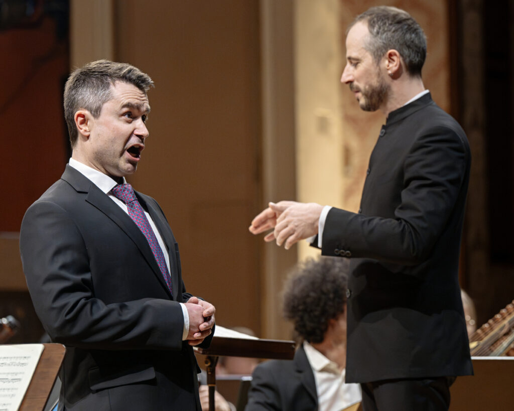 Eric Stoklossa zpíval zpaměti, a to i árie, noty měl jen bokem. Dokáže dát v recitativech slovům a vokální lince jednotu výrazu a hudební logiky. Krásně vypráví, je pro roli, obdobnou té v Bachových pašijích, i když méně rozsáhlou a minimálně dramatickou, momentálně jedním z ideálních představitelů. Do árií vnáší lahodnost hlasu, kultivovanou stylovost i technickou lehkost. Večer ozdobil. Ještě víc snad nadchl Krešimir Stražanac. Jeho měkký odlehčený a ohebný přednes s příjemnými vyššími tóny a nenásilně a krásně znělými hloubkami i bohatství hudebního a duchovního výrazu, který zprostředkovává, jsou vzorové.