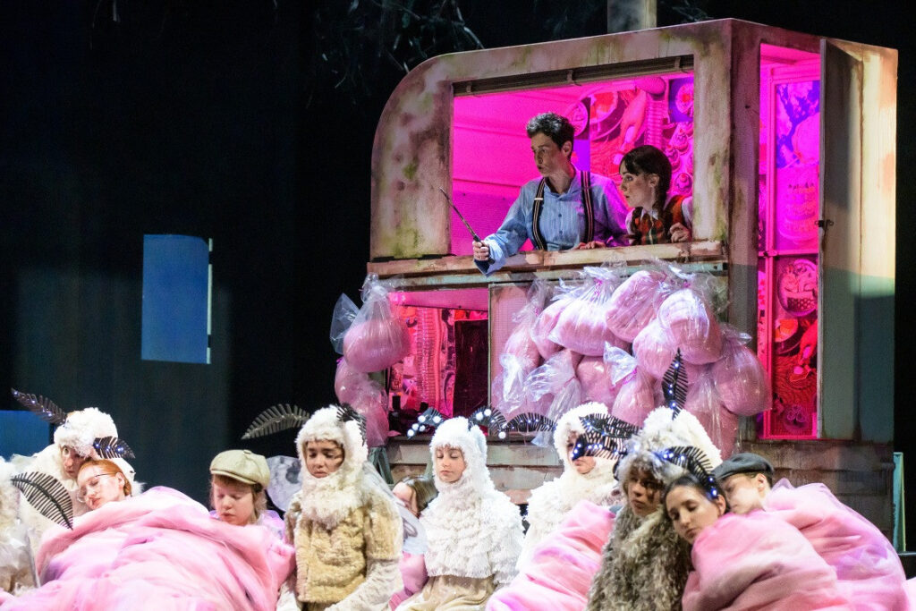 Orchestr má obvyklé dobové obsazení včetně harfy, basklarinetu a rozšířené palety bicích nástrojů. Bohužel plzeňský operní orchestr řízený spolehlivým Jiřím Štruncem (rozhovor čtěte ZDE) jsme tentokrát nezastali v té nejlepší formě. U prokomponované opery, jakou je právě Humperdinckova partitura, chyběly dynamické odstíny, jistě by stálo za úvahu i zpomalení některých temp a soustředění se na intonaci počátečního vstupu lesních rohů.