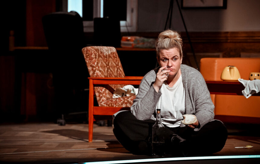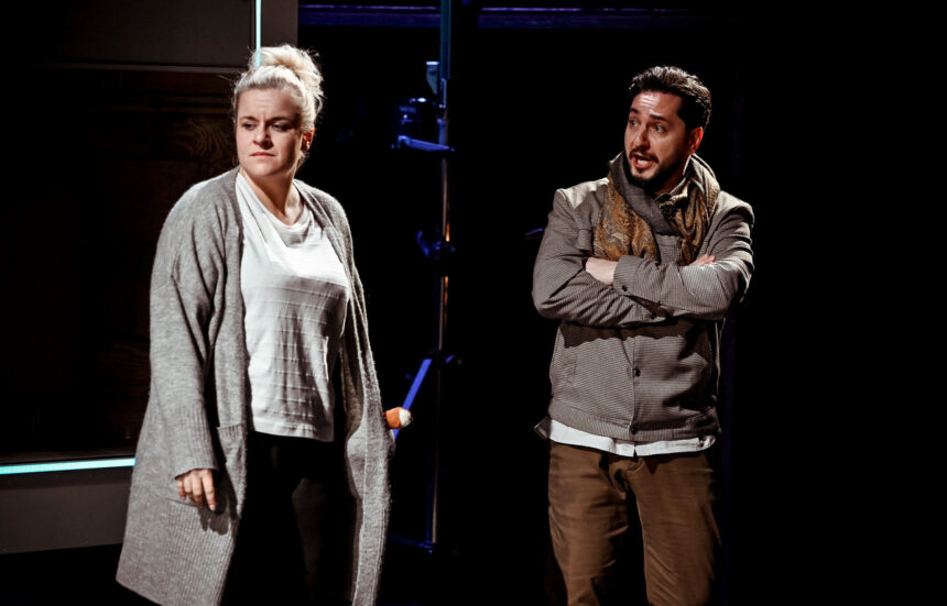 Spolu se sborem zaplňují prostor na jevišti kolem bytu, orámovaného obrazovkou s neonovým osvětlením. Místa mají málo, přesto zde křepčí v rytmizovaném tanci, který se po chvíli stává nudným, neboť je nekoordinovaný a se stále stejnými pohyby, ale alespoň hlasy znějí kompaktně. Spolu s nimi „trsá“ i Kostelnička v podání Elišky Gattringerové. Ta je excelentní, je dominantní postavou inscenace, kterou podává s dobře vypočítaným psychologickým vývojem a s volným, pevným dramatickým sopránem. Jenůfou je Barbora Perná, její soprán je dobře nosný, ale nucený silou orchestru k forzi, což jí postupně znemožňuje cizelovat jímavá piana. Přesto je její modlitba křehká a něžná, i když rušená nelogickým režijním zásahem.