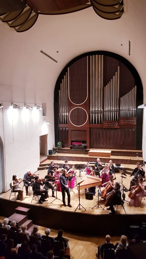 To přece jen provázelo pocitově více Vivaldiho slavnou skladbu. Byla provedena ve svém rozměrném celku přesvědčivě, místy až podmanivě zřetelnou radostí z muzicírování, na osmnáctičlenném souboru patrnou. Stylově respektuje všechny obecněji známé zásady barokní interpretace, zvuk komorního ansámblu zněl v prostoru daného sálu kompaktně, plně, v požadovaném nosném, hutném forte, jemuž by občas slušela větší vzdušnost, nadlehčenost. Rovněž echa pian vedle forte zaznívala patrně trochu více v představě na pódiu než v reálu dopadu zvuku do auditoria. V tom má logicky hrající dirigent nevýhodu, neb je uvnitř tvoření, což je jiná pozice než dirigentův střízlivý nadhled od dirigentského pultu. Jan Talich vládne měkkým tónem ve všech polohách, svěžím, technicky suverénním projevem, jeho stále pohotová technika pravé ruky mu umožňuje zahrát bryskně technicky nesnadné pasáže, arpeggia mu vyznívají s poměrnou jistotou. Musím se upřímně podivit, jak se panu Talichovi daří udržet si hráčskou kondici při tak obtížné, psychiku vysilující činnosti, jakou je dirigování. Není mnoho podobných příkladů, kdy si dirigent dokáže udržovat svoji sólistickou formu, pokud volí hlavní zaměření dirigentské. Snad jen Radek Baborák maně napadá… Skloubit studia mnoha obtížných partitur a zároveň efektivně a intenzivně cvičit na nástroj (jinak jde technická forma nezadržitelně dolů) je velmi obtížné, alespoň z mého pohledu. V tomto směru bravo a klobouk dolů před intenzitou práce pana šéfdirigenta Jana Talicha! Přídavek – Adagio ze Sonáty J. S. Bacha – byl zajímavým dokladem Talichova smyslu pro jemnost stylu, takticky i vhodně volen po vyexponovaném závěru Vivaldiho.