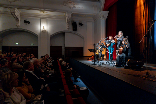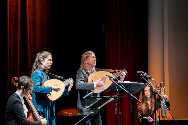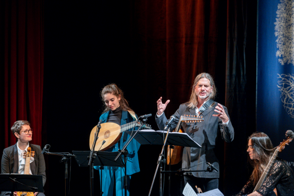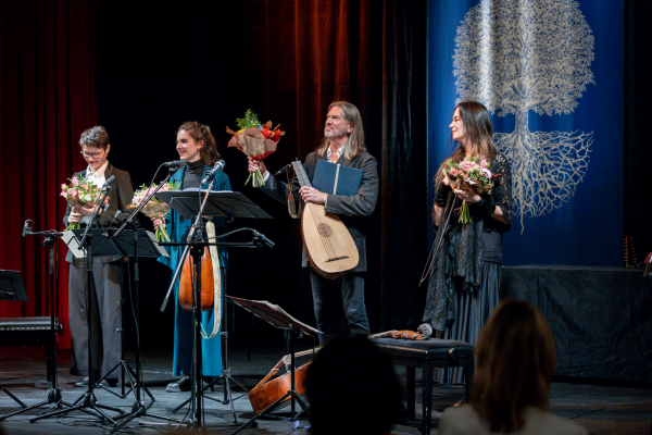 Jak už bylo řečeno, Joel Frederiksen na pódiu Městského divadla v Děčíně nestál sám. Společně s ním tam byla jeho kapela, kterou v tomto projektu tvořily loutnistka a zpěvačka Emma-Lisa Roux a dvě hráčky na violu da gamba Giovanna Baviera a festivalovému publiku rovněž již známá Hille Perl; na festivalu vystoupila v recitálu společně se svou dcerou v loňském roce. Emma-Lisa Roux Joela Frederiksena podporovala ve zpěvu refrénů svým sametovým a až překvapivě silným hlasem, rozsvěcovala zvláštní ponurost, kterou svým basem, podpořeným částečně echem, navozoval hlavní interpret a frontman ansámblu.