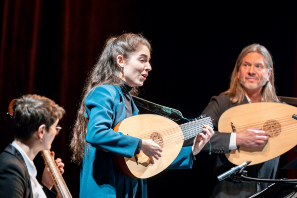 Podobná konstrukce cohenovsko-renesančního repertoáru pokračovala i v další písni Bird on the Wire, na kterou byly naroubovány renesanční kusy z Francie a Anglie o slavičím zpěvu a Cohenovy sloky zde tvořily cosi jako refrén. Tento blok byl doveden do velmi pěkného dvojhlasného závěru, když to však začalo být opravdu krásné, píseň skončila. Opravdové prorůstání Cohena a renesančního podkladu nabídla až následující So Long Marianne, to byly podle mě nejlepší chvíle koncertu. Další velice silný moment byla Frederiksenem deklamovaná You Want It Darker, ve které Cohen sumarizoval, loučil se a umíral. Viola da gamba k tomu hrála velmi sugestivní pizzicato. Bylo to dramatické a jímavé, krásné, leč smutné, podpořené opět krásným vokálem Emmy-Lisy Roux. Duši posluchače muselo zajisté na konci pohladit a utěšit obligátní Hallelujah.