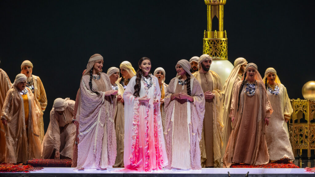 Samozřejmě, že bombastická romantika s cílem uchvátit, což se švýcarskému režisérovi a scénografovi Danielovi Finzi Pasca podařilo. Je to všestranný umělec, spolupracuje s Novým cirkusem – Cirque du Soleil – a například realizuje olympijské ceremoniály. Proměnami a speciálními efekty se nešetřilo, multižánrovost dostala zelenou, projekce doslova oživovala jeviště. Arabský folklór je barevný a fantaskní, Pohádky tisíce a jedné noci to dokazují.