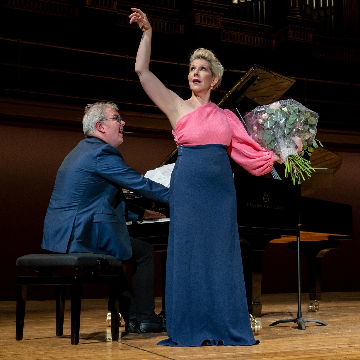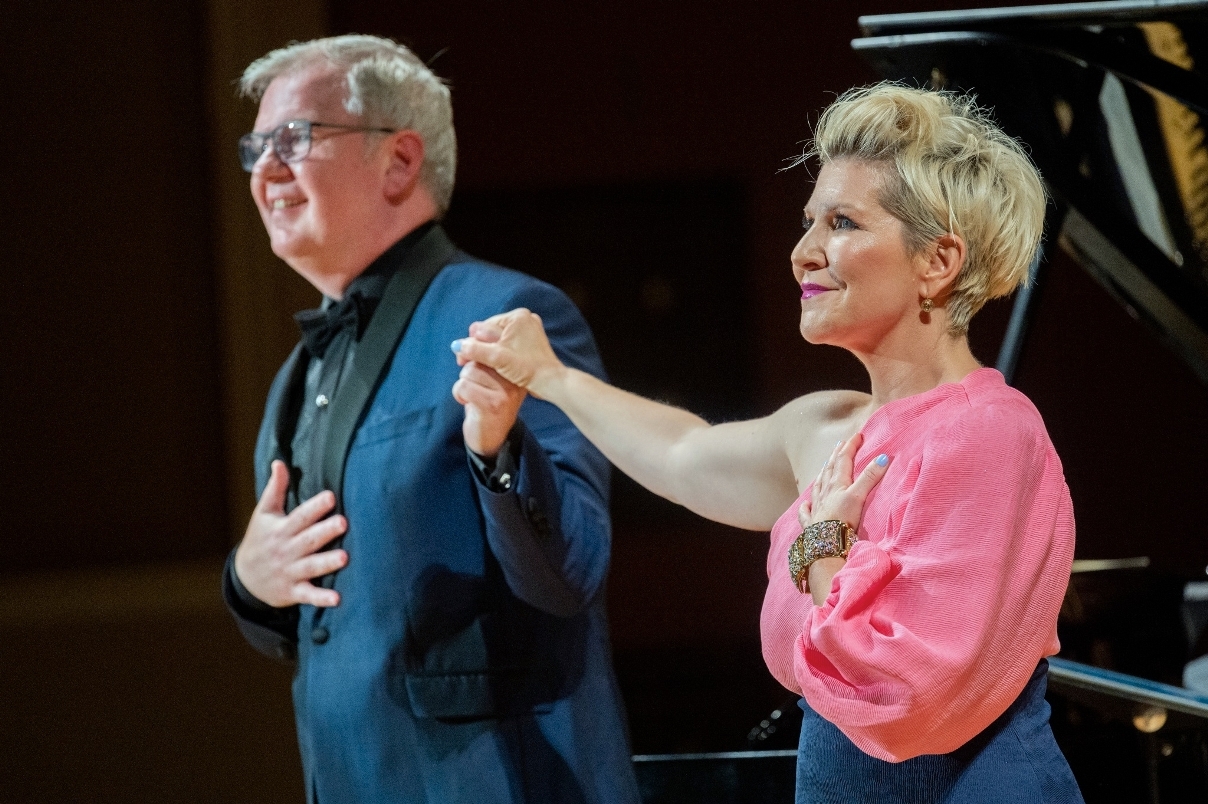 A pak už oba interpreti excelovali v repertoáru, kterému se společně také často věnují. Pianista byl zároveň aranžérem, patrně dotvářejícím doprovod z nějaké části i improvizačně. Píseň Solitude od Duke Ellingtona, stejně jako La Vie en Rose, kde vedle autora hudby Louise Guglielmi-Louiguyho figuruje u textu i u zažité interpretace jméno Edith Piaf, byly v programu uvedeny. Jako neohlašované přídavky po nich zazněly I Love a Piano, jeden z největších hitů od Irvinga Berlina z 20. let, a nakonec i Somewhere Over the Rainbow, píseň, kterou mezi válkami do filmu Čaroděj ze země Oz napsali Harold Arlen a textař Yip Harburg a která v naší době figuruje na prvním místě v seznamu stovky nejlepších filmových písní dvacátého století. Joyce DiDonato se proměnila z operní divy v Američanku, která umí podmanivě zacházet s hlasem i při klasickém školení tak, že svým projevem v trochu sentimentálních melodiích naprosto strhne. Vděčnost za toto „live“ hudební setkání byla cítit při opakovaném potlesku vstoje z obou stran: z auditoria i z pódia.