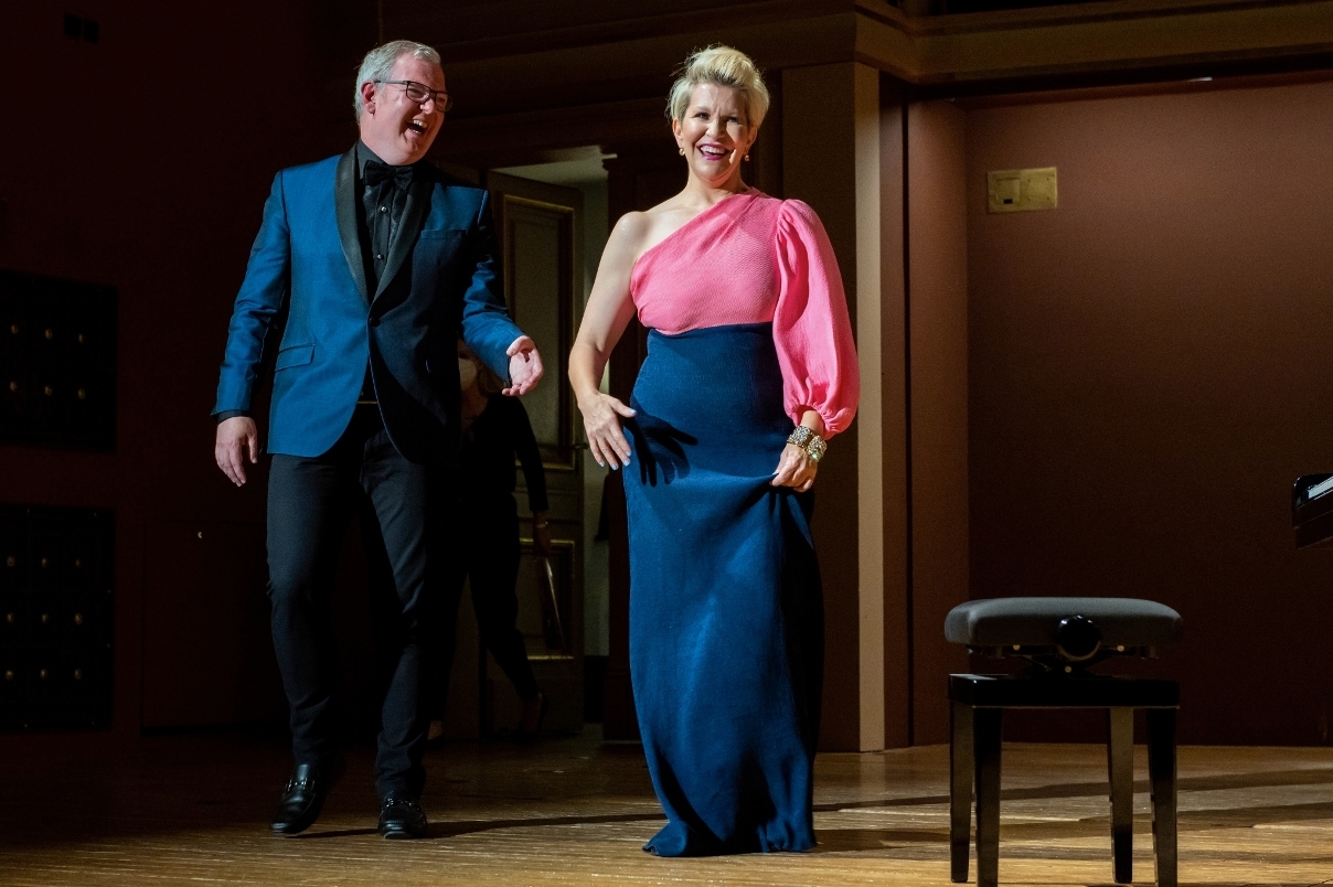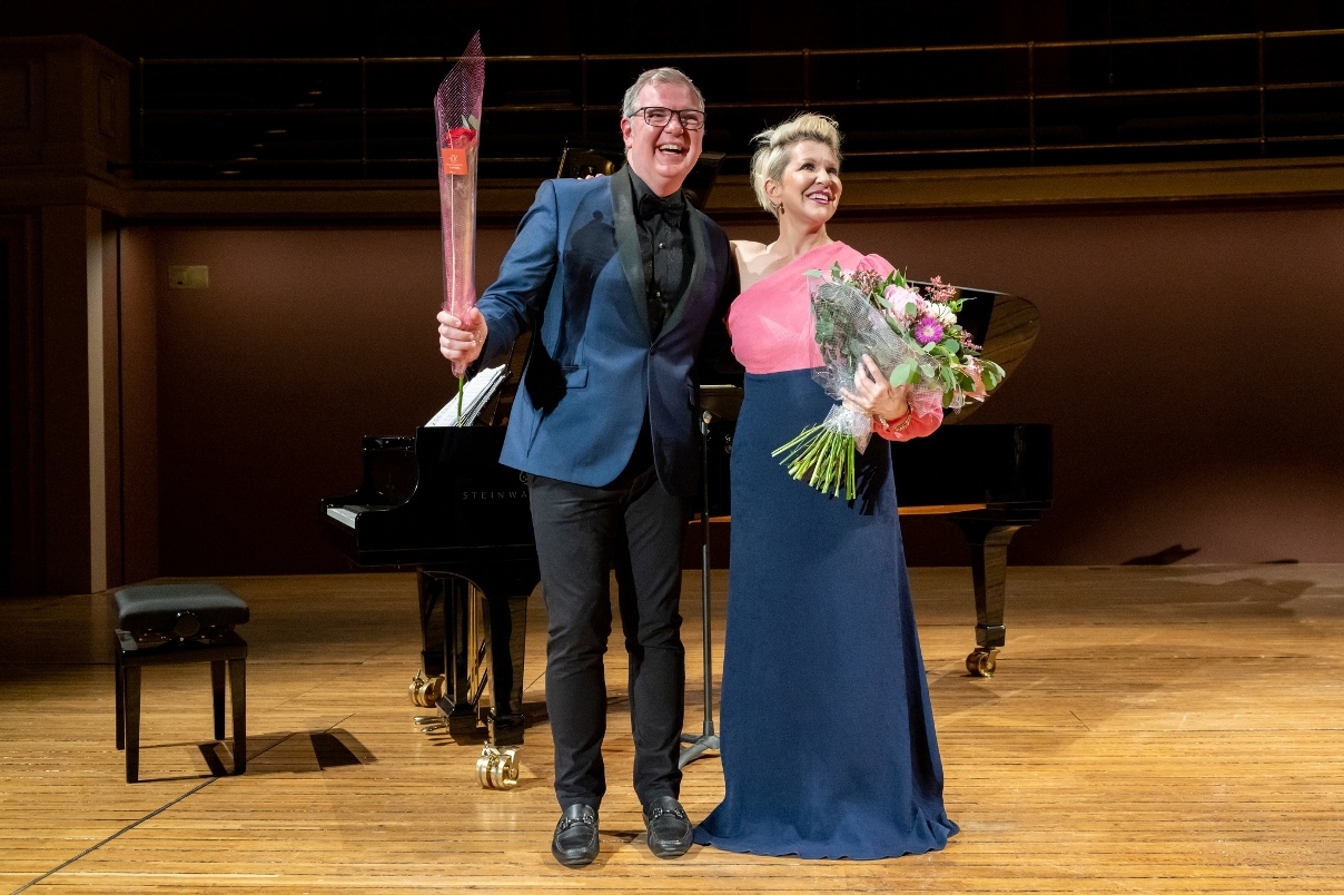 Haydnova kantáta Ariadna na Naxu je zralé dílo s italským textem, které na nevelké ploše střídá řadu psychologických poloh, sahajících od úzkosti přes hněv až po smutek. Vděčné antické téma pro mnohé skladatele od Monteverdiho přes Bendu po Martinů, jak to za dva týdny připomene právě na třech zmíněných jménech hudební projekt zařazený do programu festivalu Smetanova Litomyšl. Haydnovo zachycení pocitů ženy, nečekaně zrazené a opuštěné, si s ostatními nezadá. I v rámci celkově uměřenějšího stylu vídeňského klasicismu se dá vyjádřit mnohé a sólistka tyto možnosti využila beze zbytku: v emočním naladění, v dynamice, naléhavosti obrácené ven i zoufalosti směřující dovnitř. Hudební sonda do duše, stylová, nepřehnaná, a přece hluboce výstižná a úplná. Už tady bylo zřejmé, že Craig Terry je u klavíru rovnocenným partnerem, který jako ten nejlepší z doprovazečů písňových večerů zůstává decentně v pozadí, ale přesto nezastupitelně podporuje a dotváří a doříkává tam, kde poezie a zpěv ještě nechávají prostor.