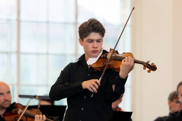 Tomáš Prechal, vnuk českého emigranta Prchala, narozený před sedmnácti lety v Nizozemsku a hovořící obstojně česky, si vybral třetí a čtvrtou větu Violoncellového koncertu Edwarda Elgara. Poetickou pomalou část zahrál nádherně a finále pak skvěle, vyzrálým a klidným způsobem, s pozorností s přehledem dělenou mezi svůj part, dirigenta a orchestr. S naprostou samozřejmostí hudbu modeloval a frázoval, ovládl sál znělým tónem dosahujícím krásnými barvami od plnosti až k pianissimu a velmi přesně vystihl základní výrazové nastavení druhé poloviny díla a její pointy i průběh. Nesporný vrchol večera. Vůbec nepřekvapuje zpráva, že se Prechal dostal na Pařížskou konzervatoř, kde bude studovat už od podzimu… Zdá se, že by o něm ještě mohli být slyšet! Loňský rozhovor s mladým violoncellistou a také skladatelem, pořízený při jeho první účasti na Letní hudební akademii v Kroměříži, si připomeňte ZDE.