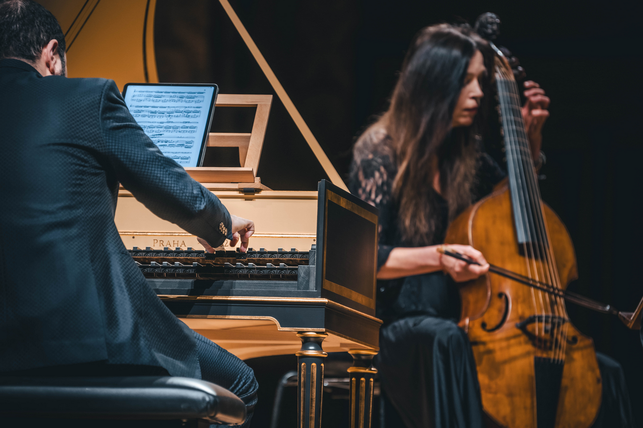 Schopnost violy da gamba mísit se s většinou ostatních instrumentálních nebo vokálních barev i čtyřoktávový tónový rozsah jsou pro souzvuk s cembalem ideální. Zejména pokud na ně hraje Mahan Esfahani, s kterým Hille Perl vystupuje, dokonce spolu pořídili i nahrávku. Esfahaniho tvoření výrazu a dynamiky je jedinečné (ano, jeho cembalo je schopno vytvářet barevné i dynamické odstíny – citlivým rejstříkováním, ale především proměnlivostí tempa a toku hudby), právě jako cit pro vhodnou ornamentiku. Jeho hra neustále poutá pozornost, i když odnáší kamsi mimo tento svět. Kdosi napsal, že hudba hraná na cembalo letí. Lehkost doteku a plynutí hry může evokovat vodní živel – tu rozbouřená řeka bere břehy, vzápětí se ztišuje, aby nabrala sílu pro zurčení kaskád. Možná to není nejpříhodnější příměr, ale právě tahle představa mi běžela hlavou během Sonáty pro violu da gamba a cembalo g moll, BWV 1029 Johanna Sebastiana Bacha. Zvukové sepětí obou nástrojů bylo rozkoší pro uši, navyklým robustnějšímu zvuku jiných instrumentů, tónová artikulace i souhra v agogice se blížily dokonalosti. Až absolutní vzájemné hudební porozumění nastalo v Sonátě pro violu da gamba a cembalo F dur Františka Bendy, jejíž první větě Moderato dominoval jemný tón gambistky kroužící melodii, zatímco cembalo se cudně spokojilo s rolí continua. Omezené možnosti tvorby dynamiky obou nástrojů interpreti rázně popřeli, jejich hra byla plná valérů, zvlášť roztomilé bylo Esfahaniho něžné vychutnání si posledního taktu.