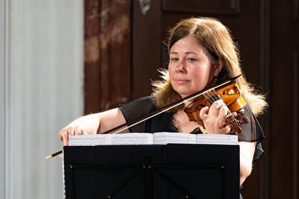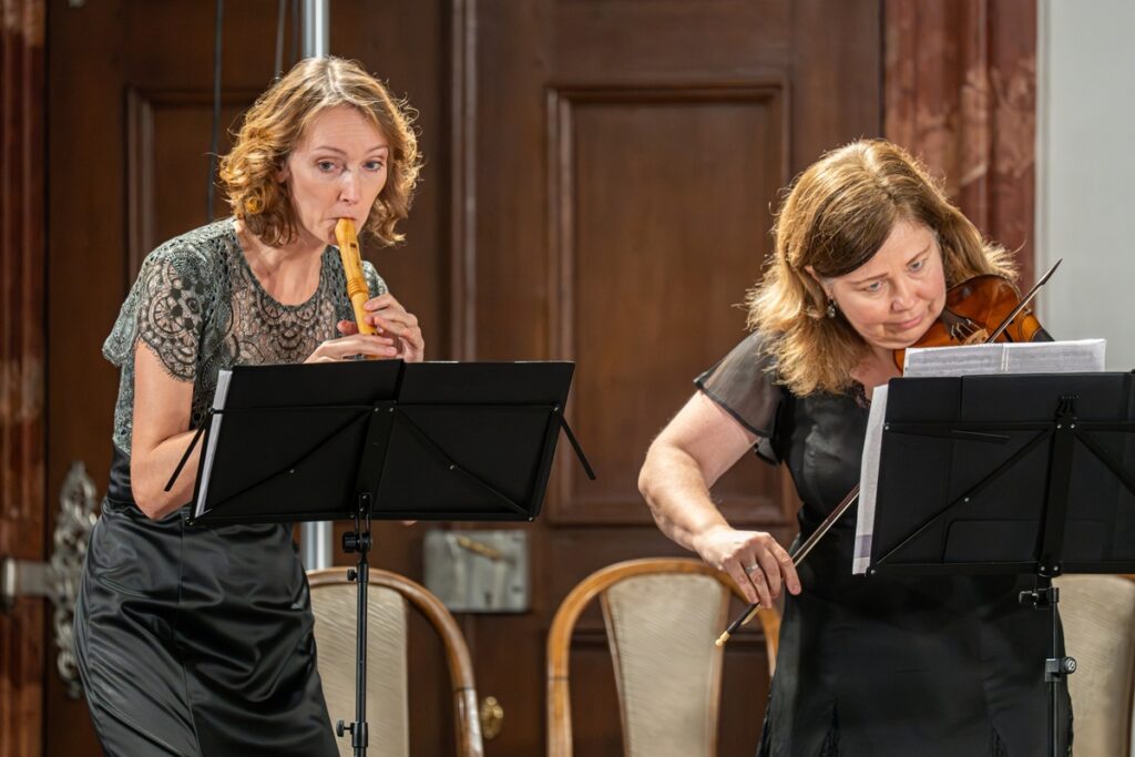 Kromě virtuozity to však byl také večer plný srdcervoucích melodií pomalých vět, z nichž některé k nám dolehly i ve formě specifického zvuku violy da gamba, doplněných hlubokou barokní harmonií. Zajímavý zvukový efekt, který o to víc podpořil harmonické vyznění, jsme slyšeli ve folii Jeana-Pierra Guignona: flétna Jany Semerádové, která doplňovala dvoje sólové housle, zněla ze zadních řad publika. Nejen, že tím do už tak nápady nabitého večera přinesla další ozvláštňující prvek, ale zároveň vytvořila zajímavý stereo efekt, přirozeně nastolila nástrojovou hierarchii v této skladbě a podtrhla skladatelem míněné disonance.