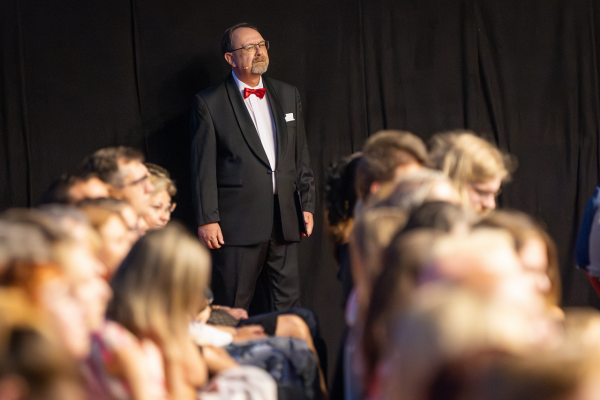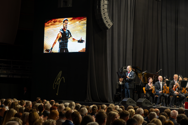 Za scénou je Vojtěch Stříteský pomyslně i doslova přítomen jako ten, kdo po studentských začátcích v zázemí teď už po tři desetiletí s velkou odpovědností koncipuje a vytváří hudební nabídku Smetanovy Litomyšle. Byl ovšem nyní první červencový večer fyzicky i na scéně Festivalové haly. Jako člověk s hlubokým kulturním zázemím, obdarovaný uměním slova, mohl směle být a byl nejen autorem podoby večera, ale i jeho kultivovaným, vtipným a nezastupitelným průvodcem.