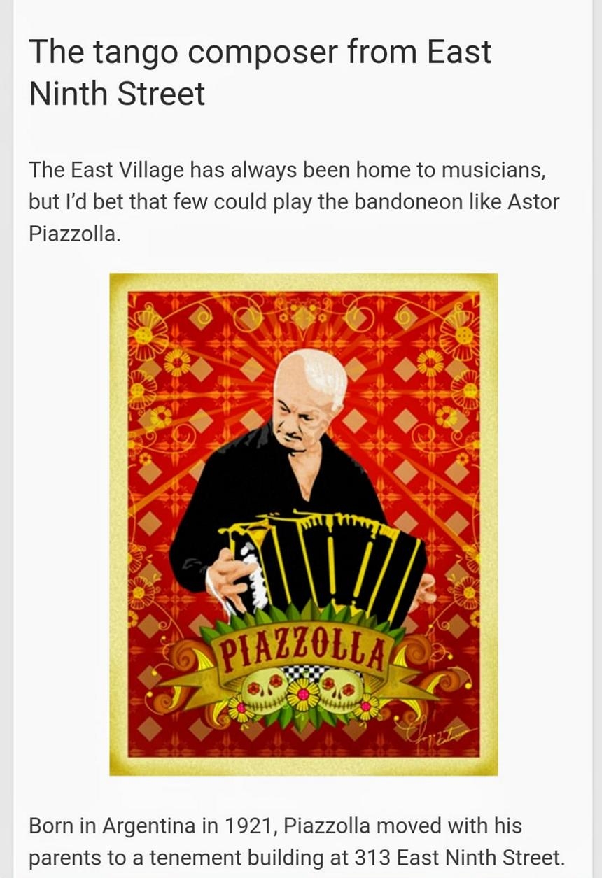 „Vytváří vlastní styl, Tango nuevo. Tím získává nepřátele z řad milovníků a zastánců ortodoxního tanga, kteří ho dokonce ohrožují na životě.“